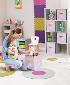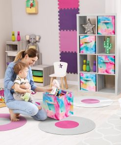 Tired of clutter? Tidy up with our tie-dye storage bin! Whether for storage or style, this cube comes in variety of fun tie-dye colors to keep everyone organized. Simply store toys, clothes, blankets, and knick-knacks from around the home. This bin fits most shelf organizer cubbies and looks great in your kid’s room, living room, or laundry area. The built-in front handle makes it easy to grab and carry. When not in use, fold flat for storage.