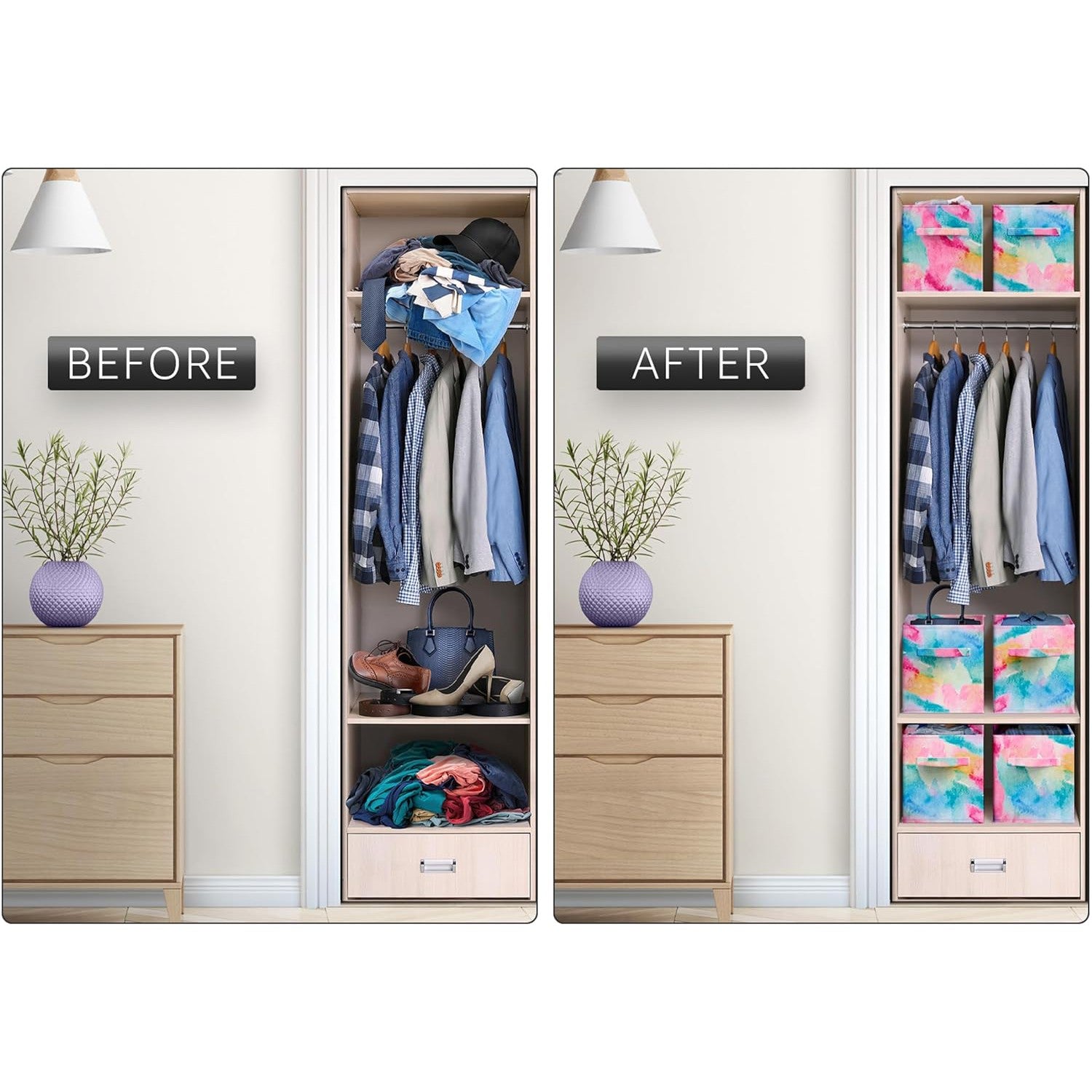 - Fits most cube organizer shelves.