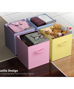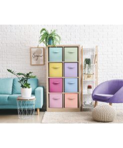 The Storage Cubes offer a foldable solution for organizing various items in the home or office. Versatile in application, these cubes are suitable for storage in closets, nurseries, and more. They can accommodate games, crafts, toys, books, clothes, and other household items. With their collapsible design, they can be easily stored when not in use, saving space. Assembling them is a breeze, simply pop the cardboard floor into place. Equipped with two sturdy handles, they are easy to transport. Made of nonwoven polypropylene and cardboard, these cubes complement cube storage organizer shelves seamlessly.