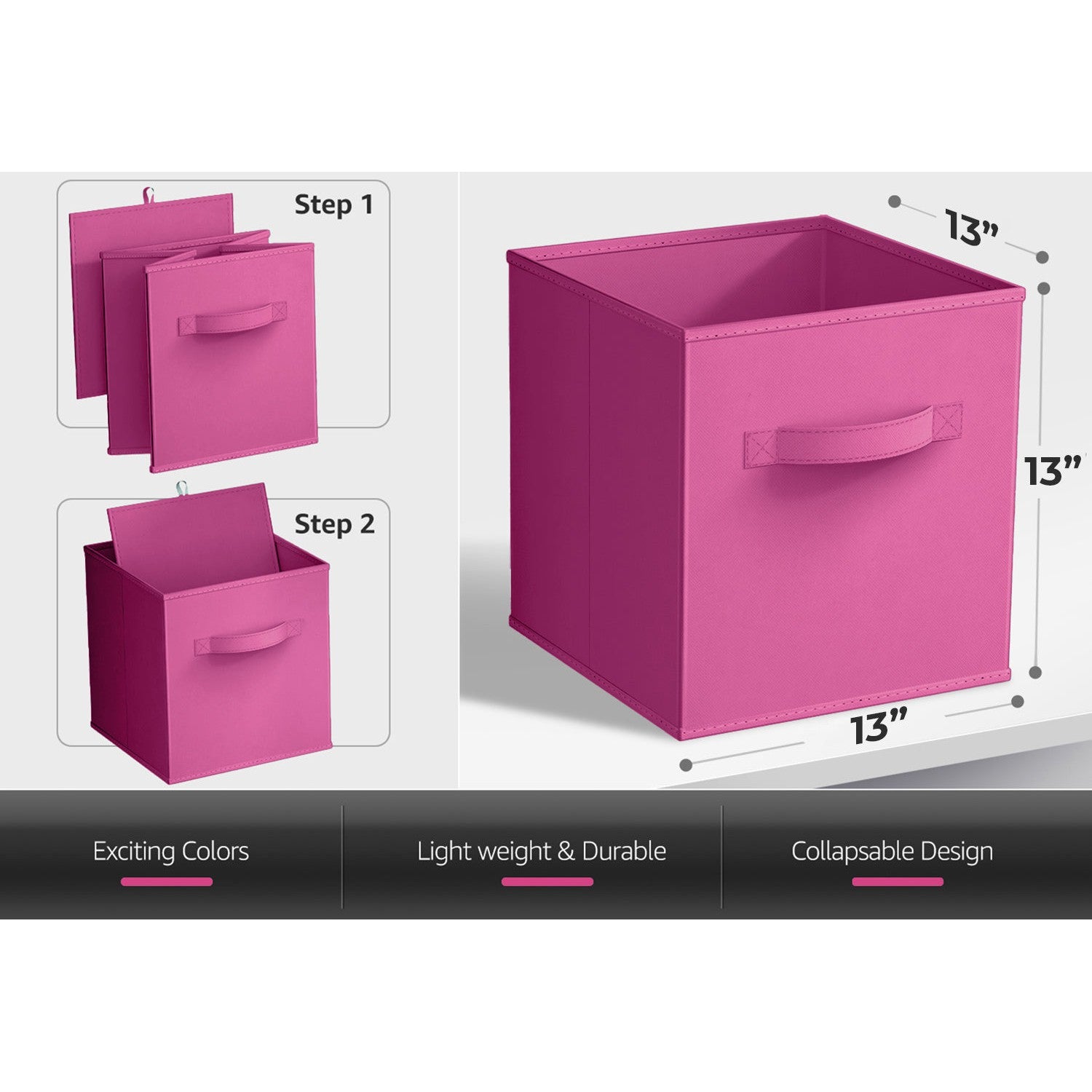 - Collapsible storage cube saves space when not in use by folding storage cube bins flat for easy organization and storage