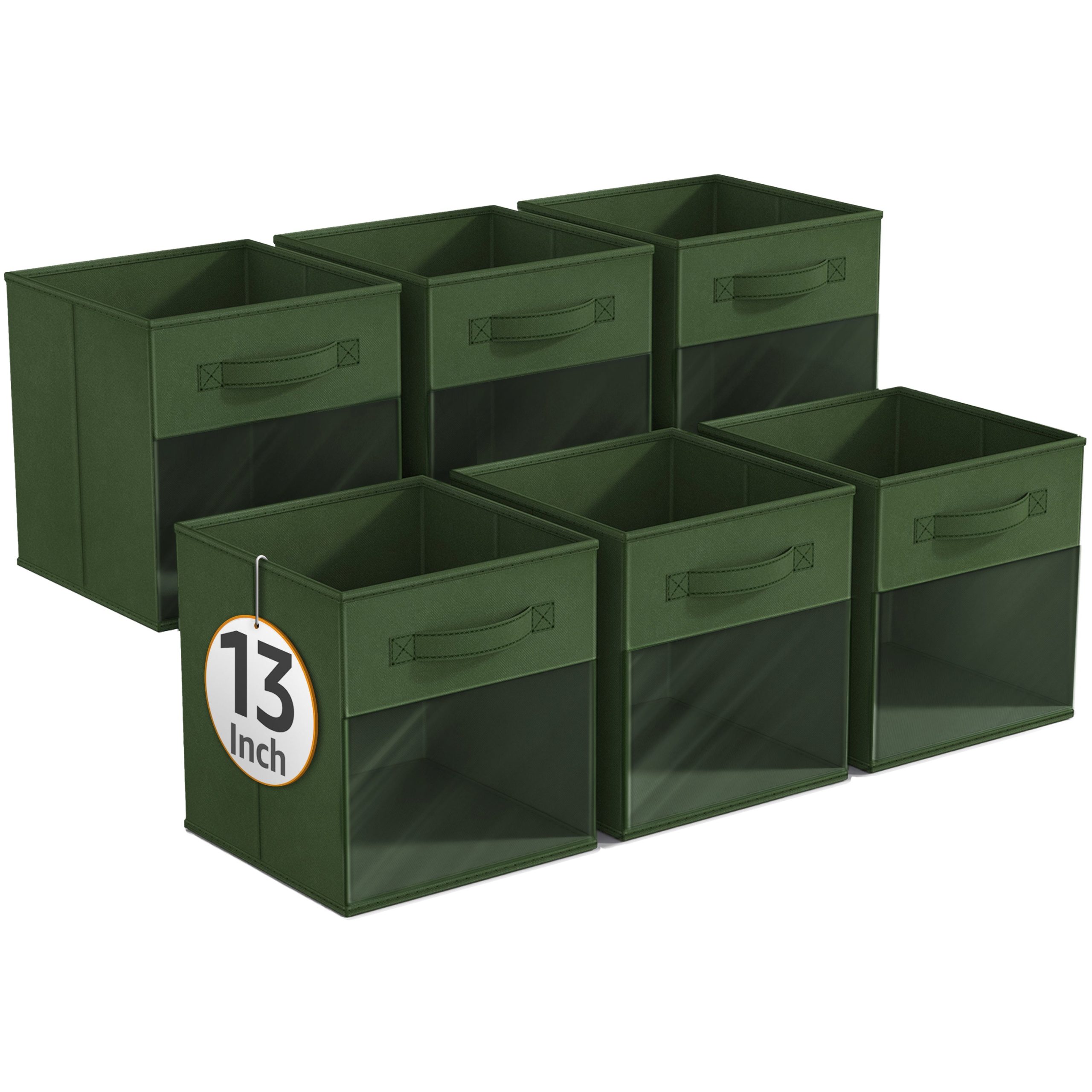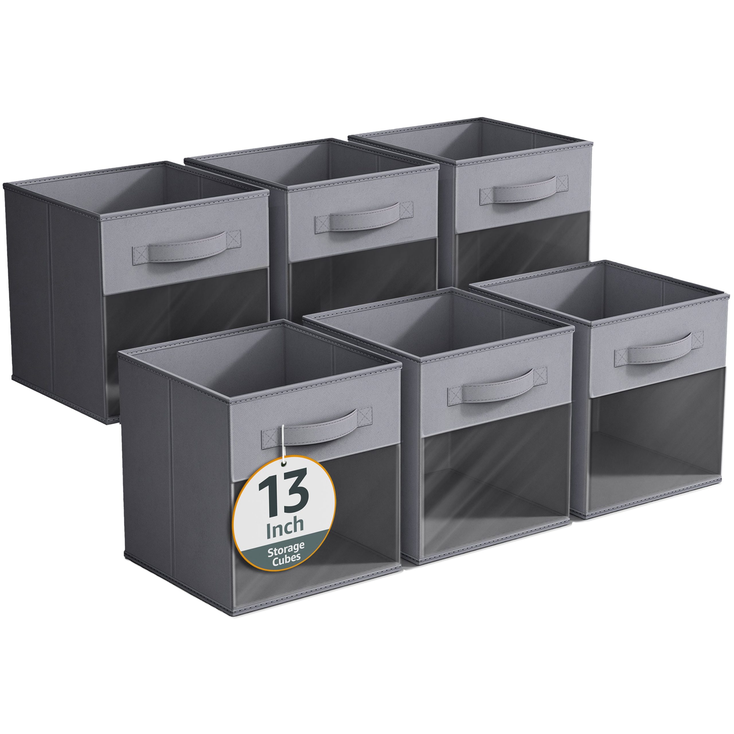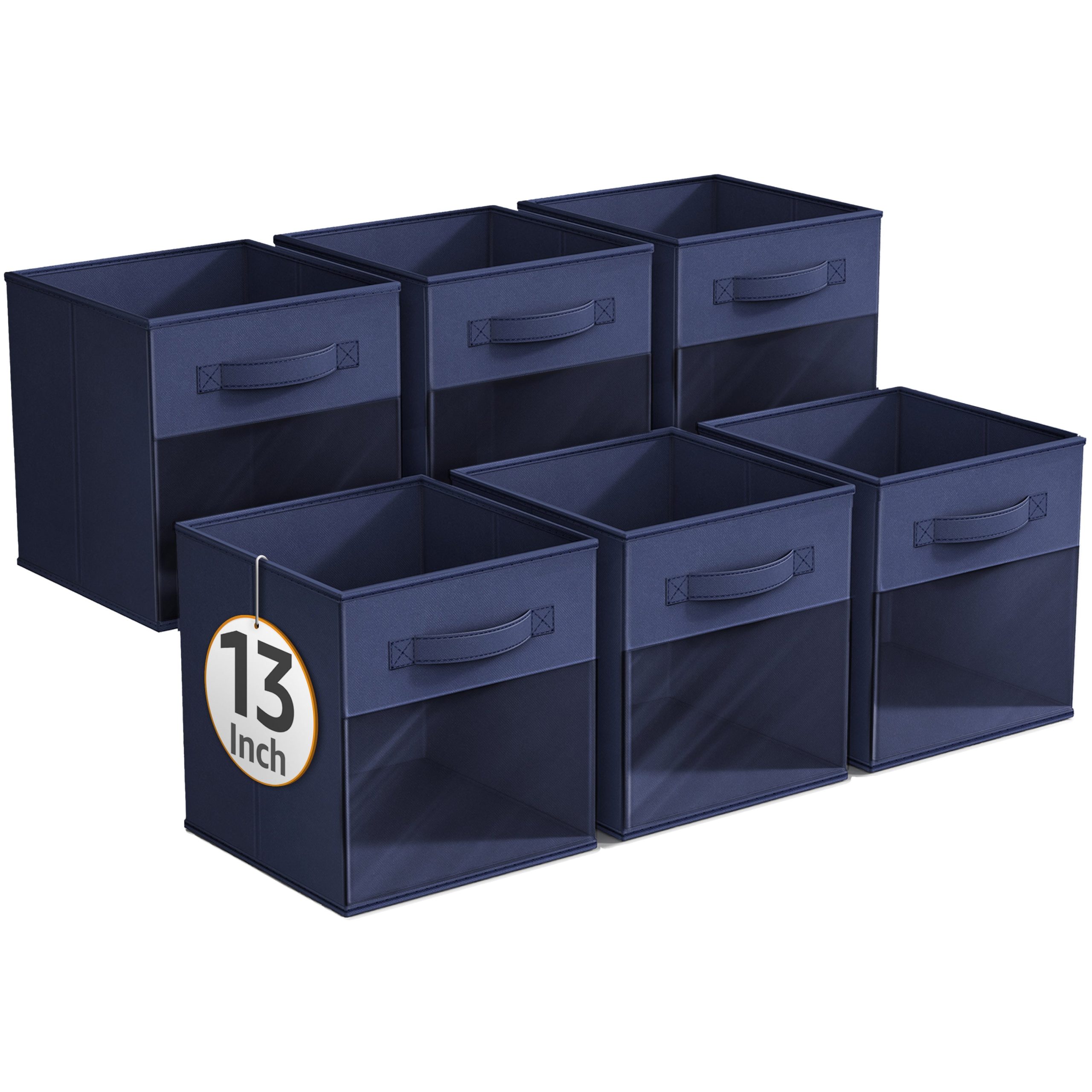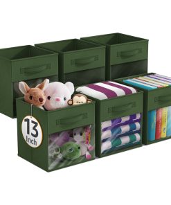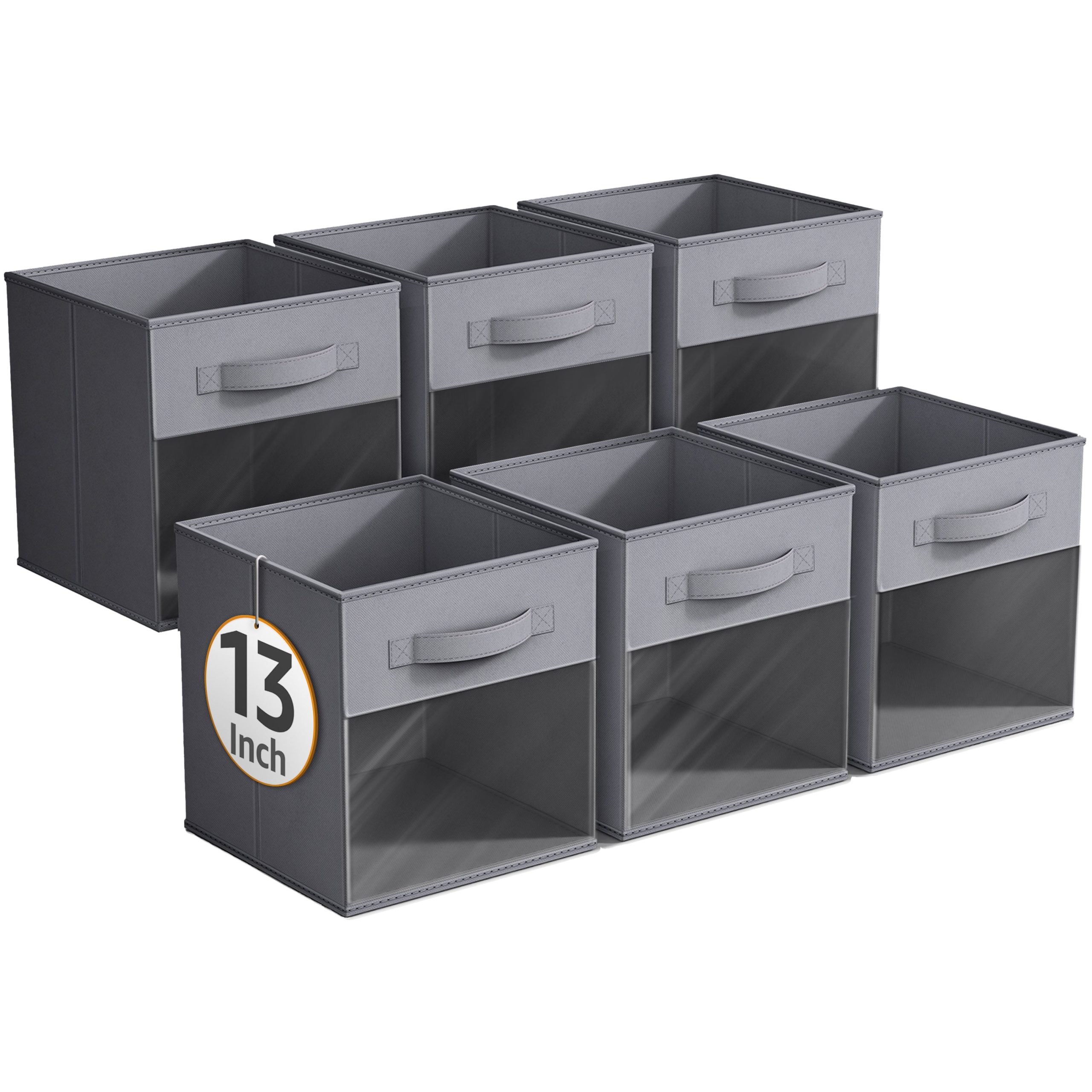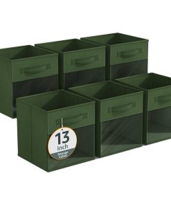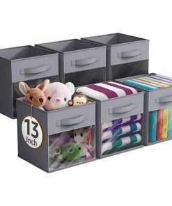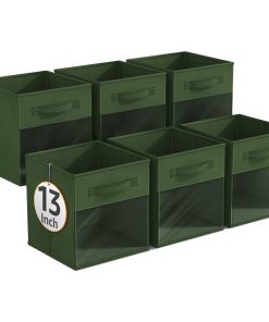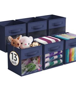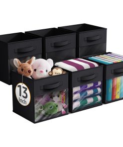- Foldable Collapsible 13″ Storage Bin with Clear Window comes as a 6-pack.