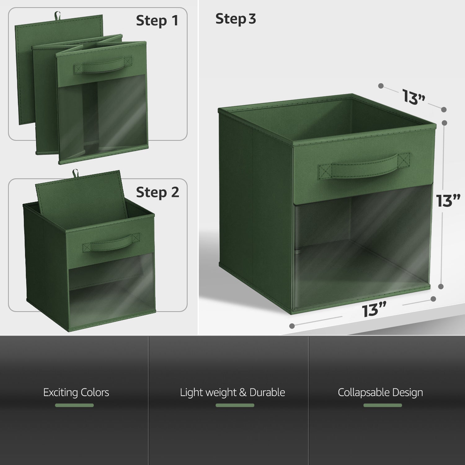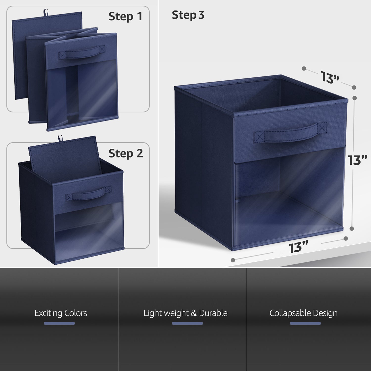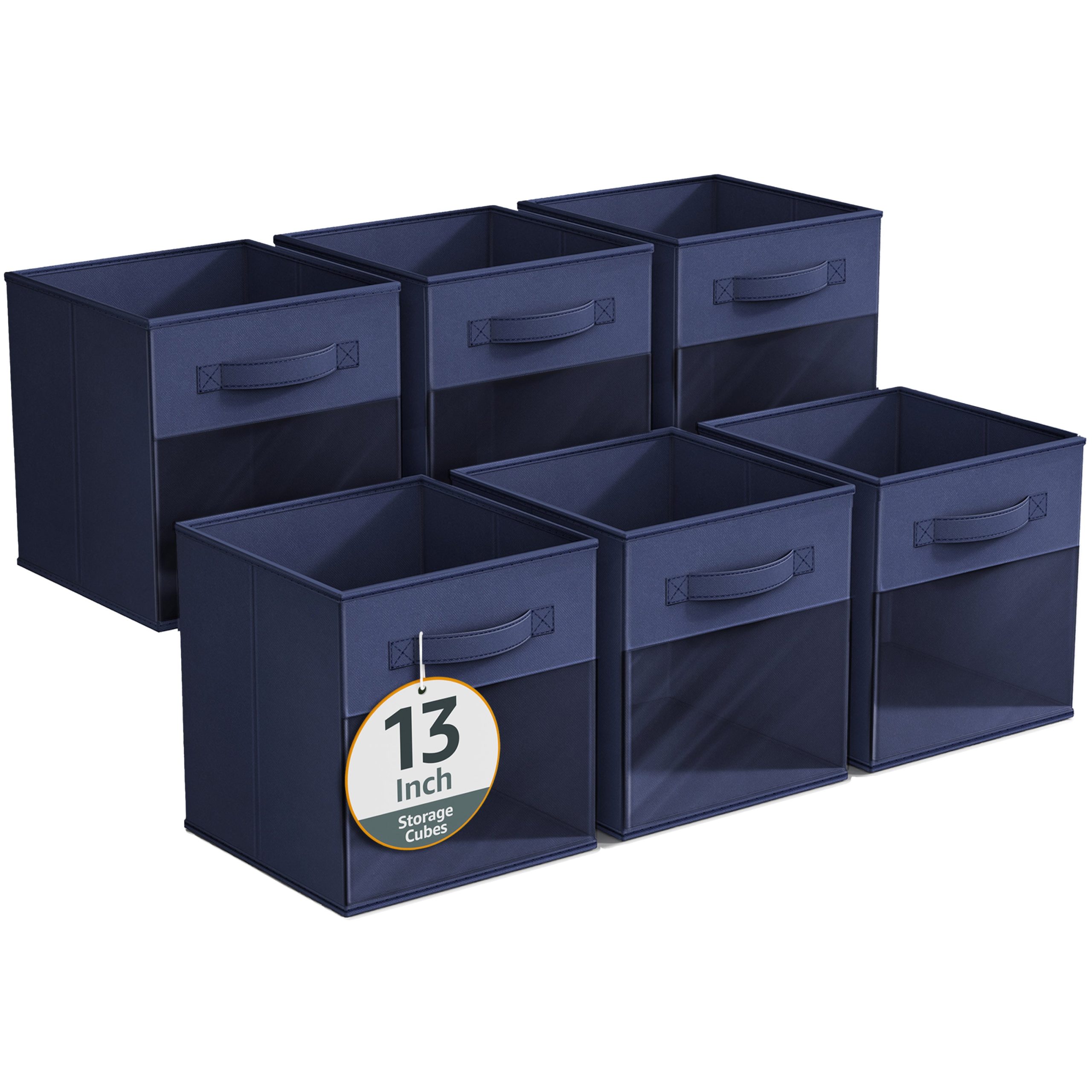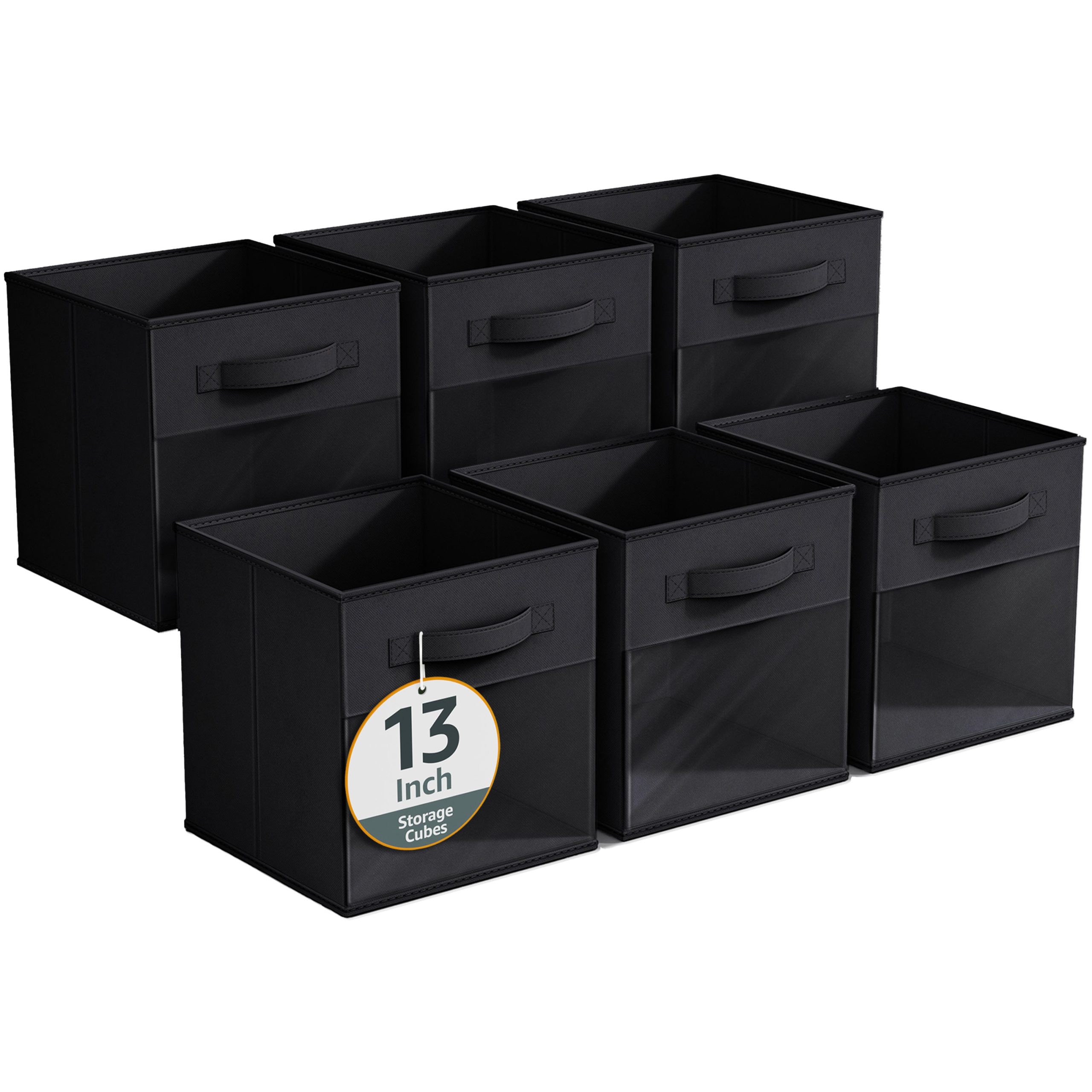 - Foldable Collapsible 13″ Storage Bin with Clear Window comes as a 6-pack.