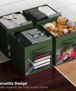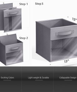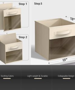 With the foldable, space-saving design, each bin folds flat for compact storage when not in use and assembles quickly by inserting the included cardboard base. It is sturdy and portable, it has built-in handle makes it easy to pull from shelves, carry between rooms, or rearrange as needed. Lightweight yet durable for everyday use.