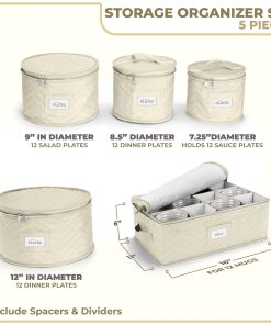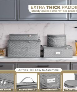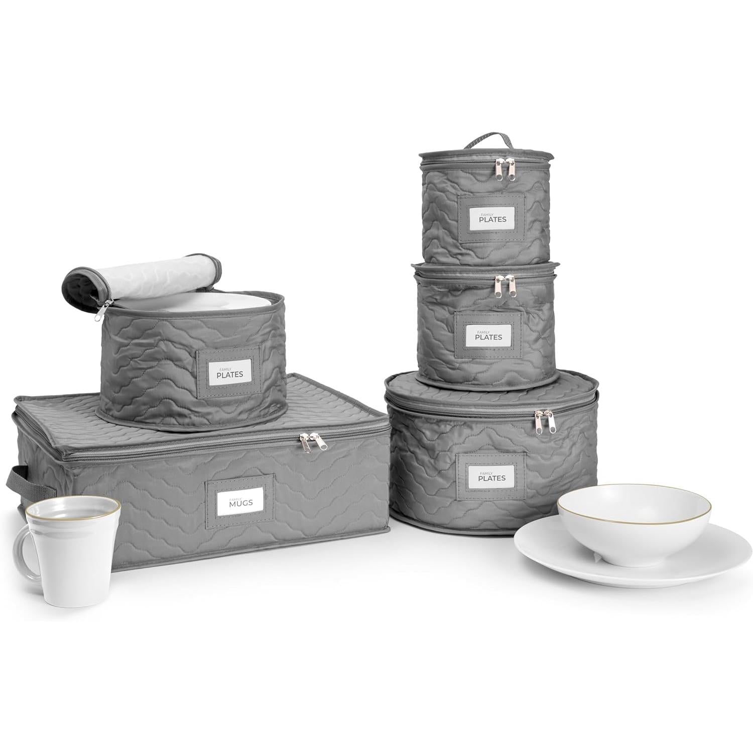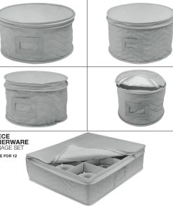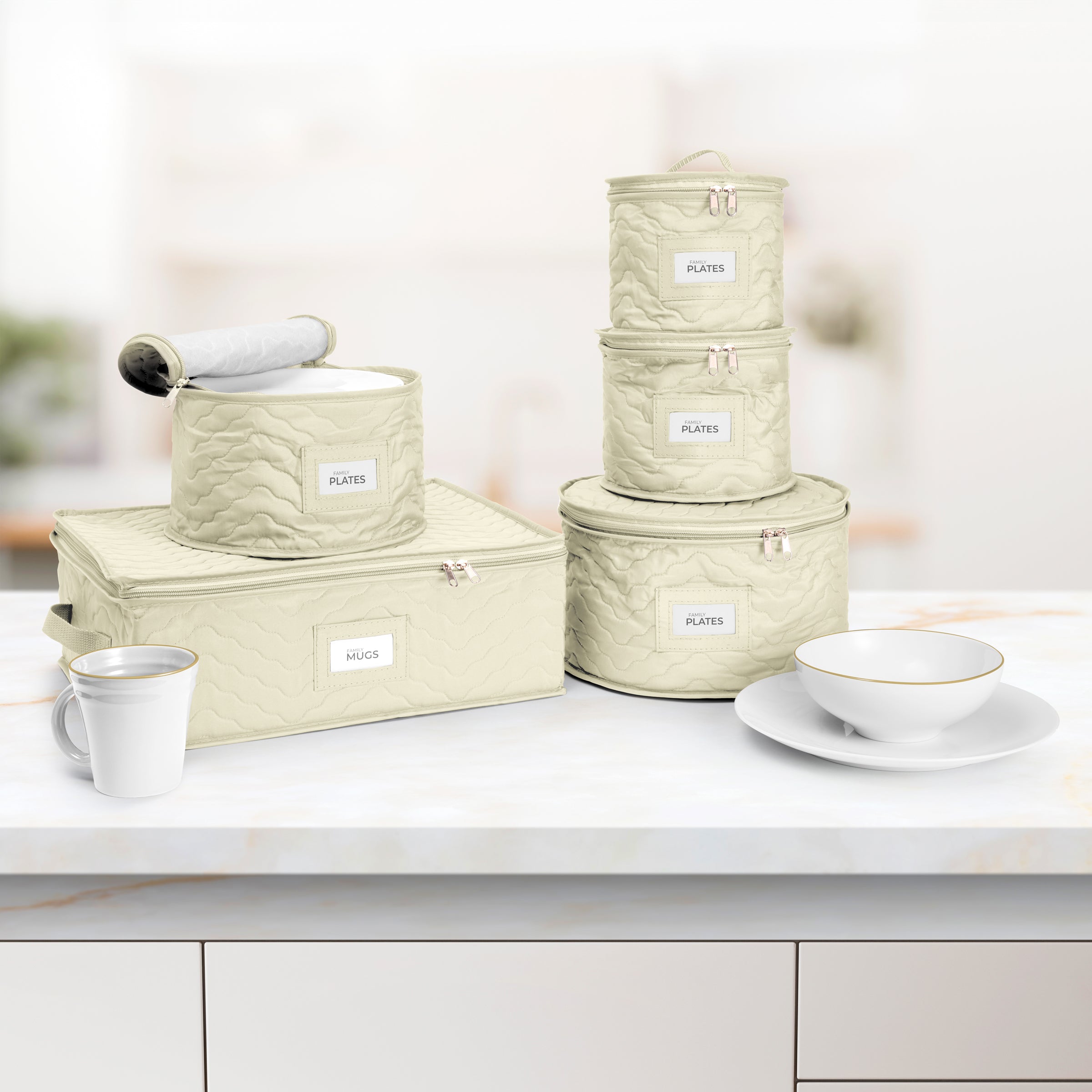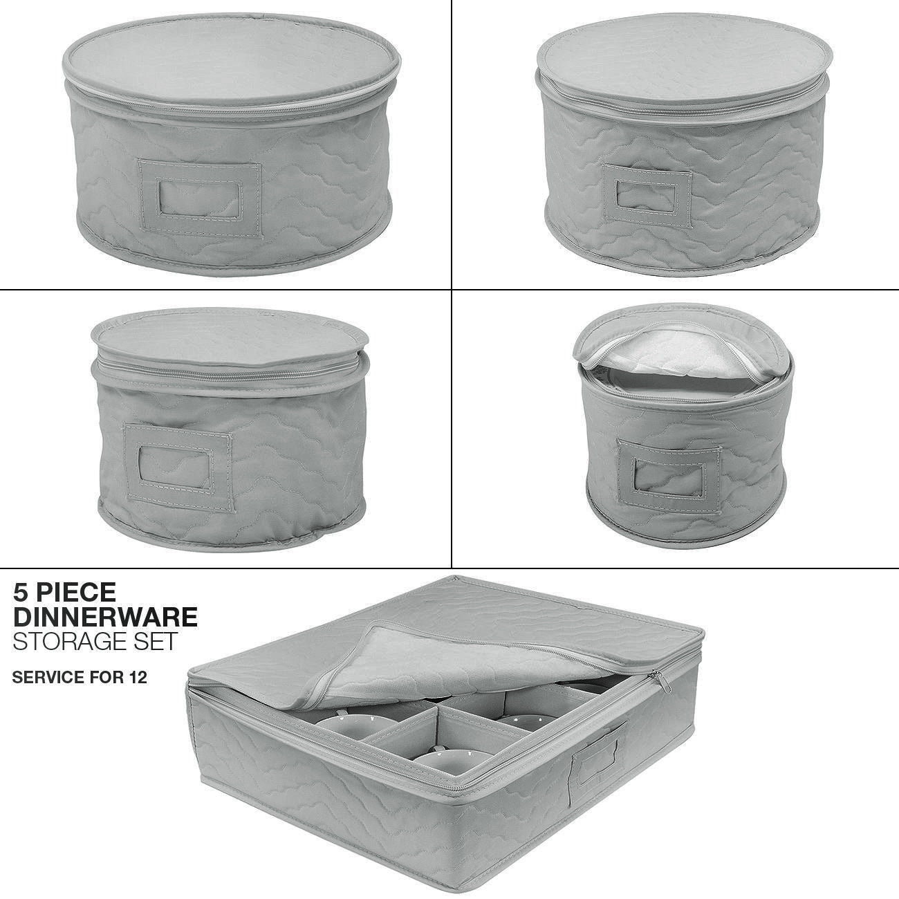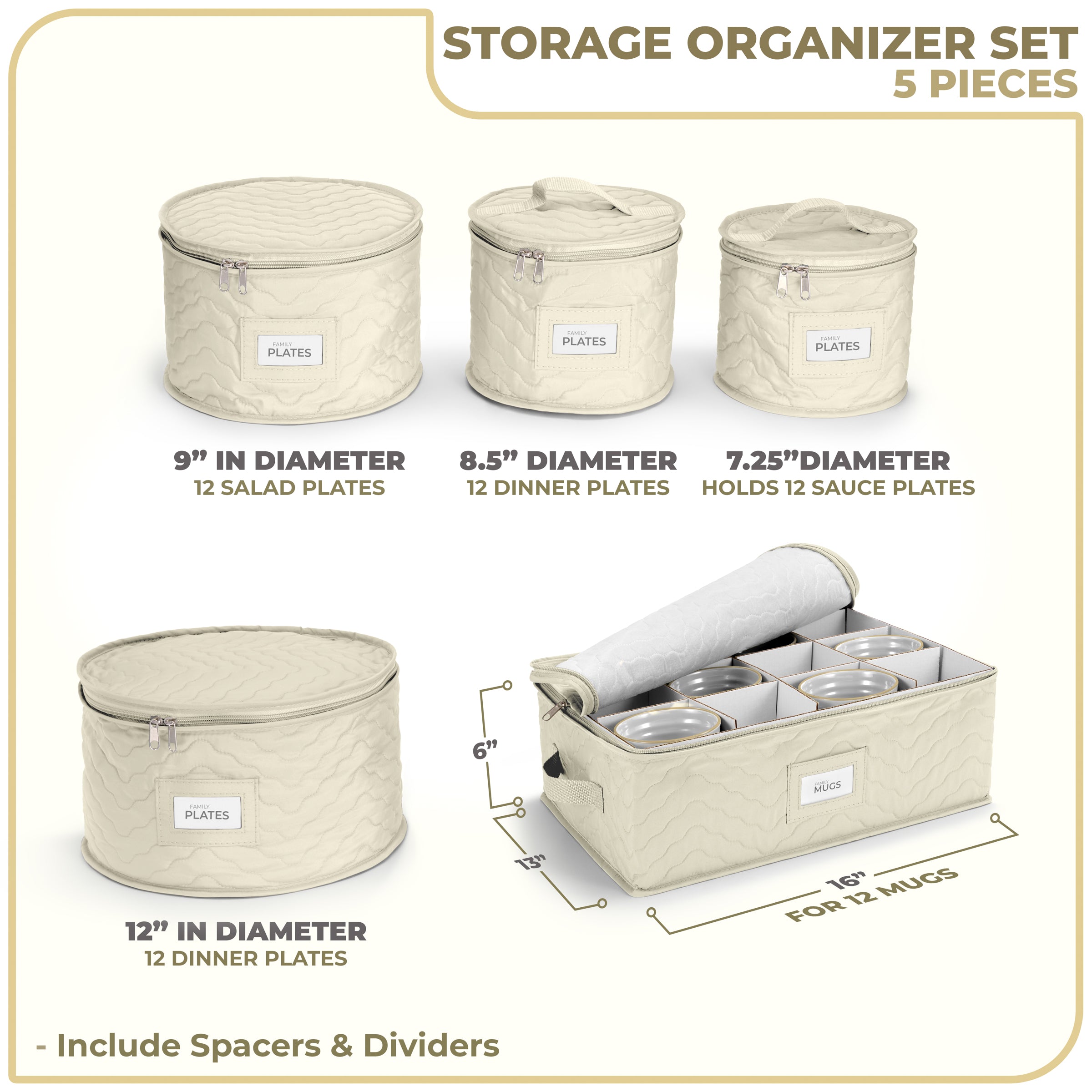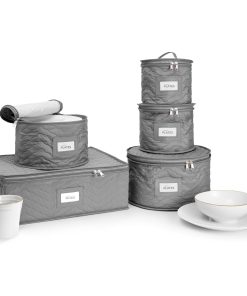 Safely store your cherished dinnerware with the Sorbus 5-Piece Storage Set! Providing service for 12, this quilted storage holds dinner plates, salad plates, dessert plates, saucer plates, and cups, shielding them from dust and damage. A top loading design allows for easy access while the gentle nylon zippers keep each case closed. Felt protectors are included to cushion plates and cardboard dividers separate your mugs and glassware. For added convenience, insert your own label inside the content window to quickly identify dishes before your next dinner party or afternoon tea. It’s ideal for precious china, expensive dinnerware, or priceless inherited heirlooms from generations before.
