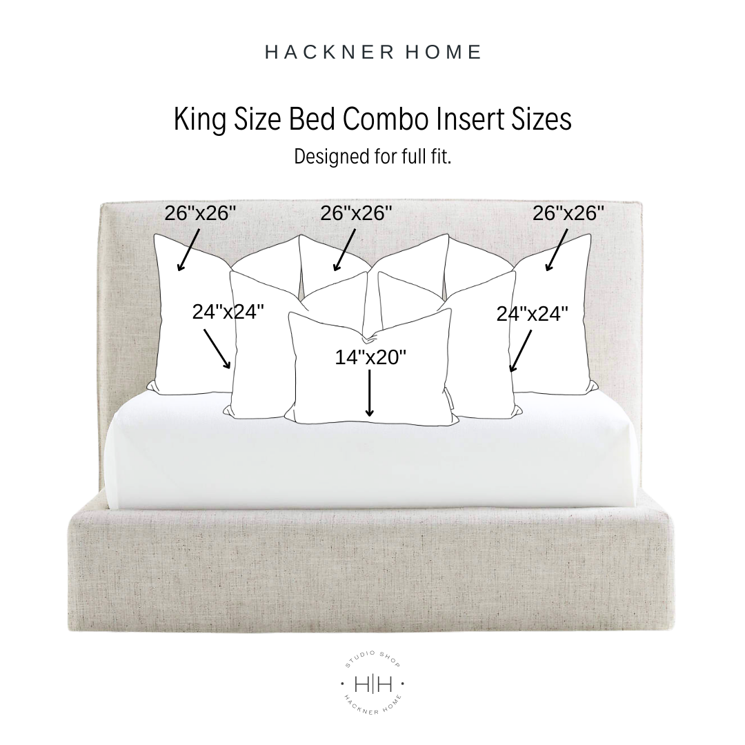 DESIGNED FOR USE WITH OUR BED PILLOW COVER COMBO ’14×20 Center’.Chose your pillow insert material fill type in the drop-down menu. Need help choosing the right fill type for your pillow inserts? See our Pillow Insert Fill Options Guide & Choose the Perfect Balance of Comfort and Style.