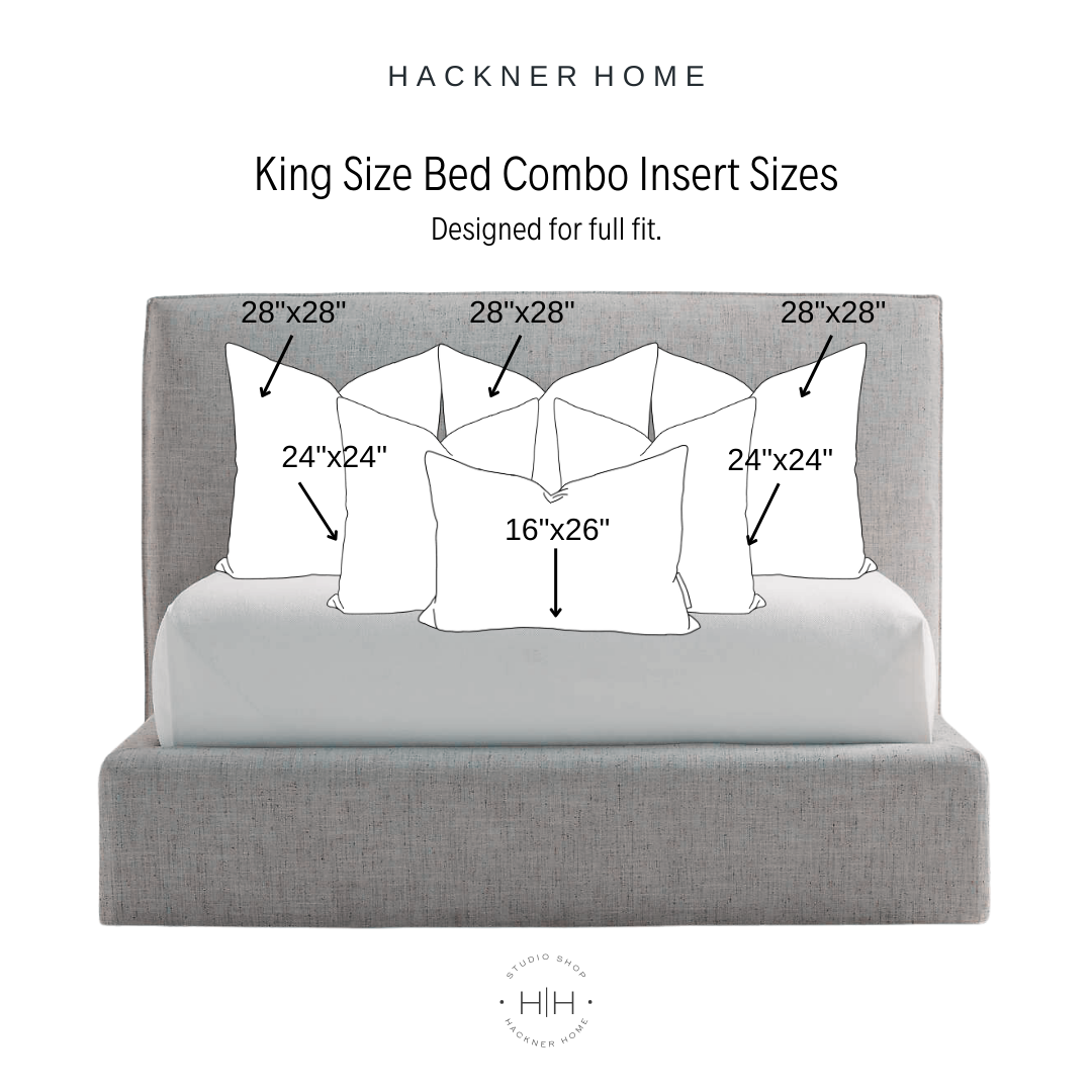 DESIGNED FOR USE WITH OUR BED PILLOW COVER COMBO ’16×26 Center’.Chose your pillow insert material fill type in the drop-down menu. Need help choosing the right fill type for your pillow inserts? See our Pillow Insert Fill Options Guide & Choose the Perfect Balance of Comfort and Style.