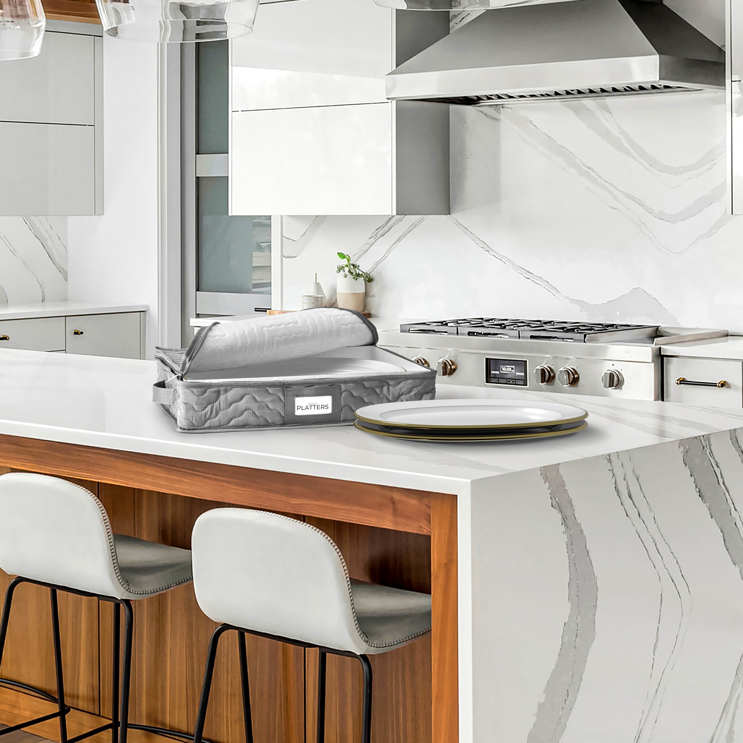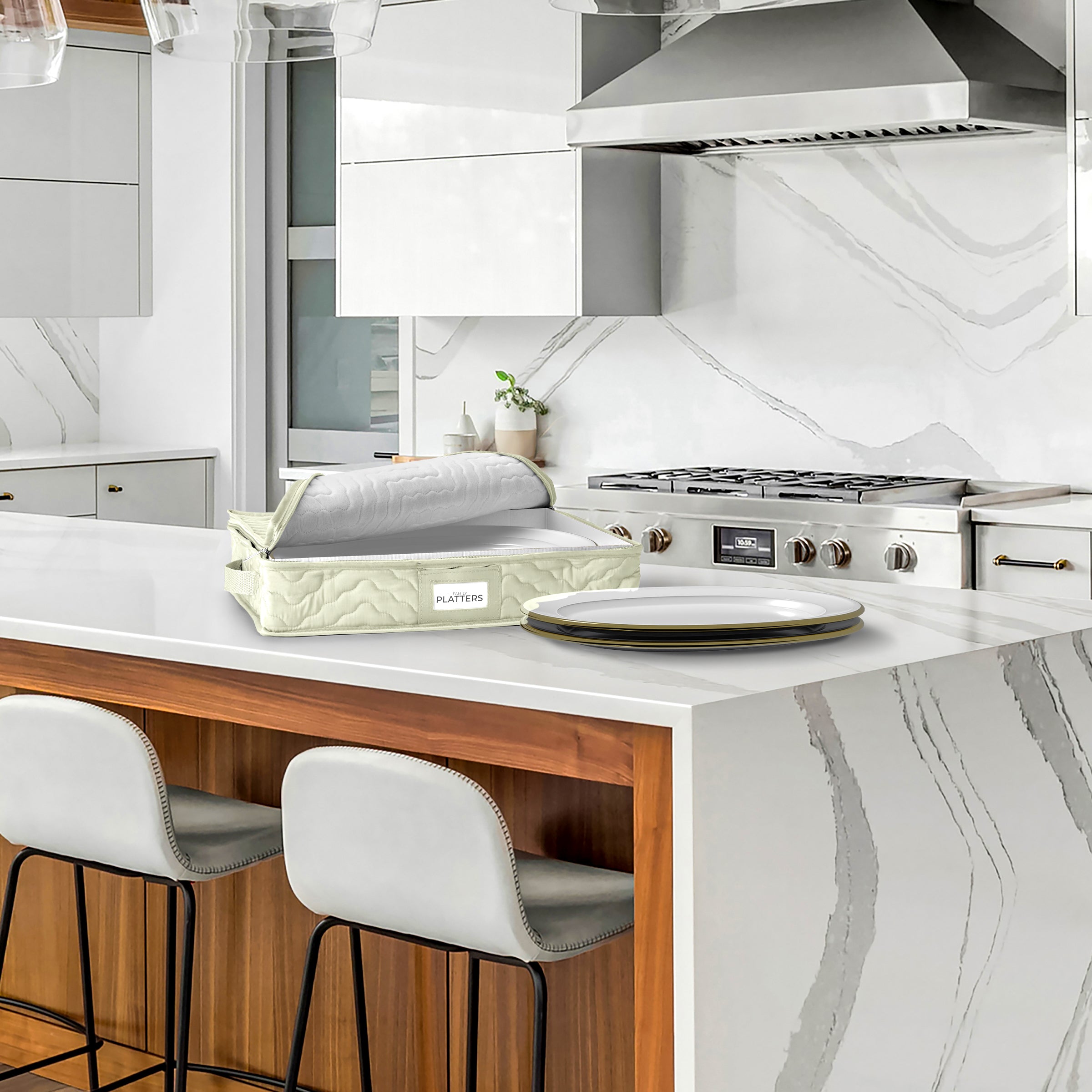 - Perfect for home cabinets or attic storage, our platter storage case features a thick quilted cover, ensuring your dinnerware stays secure when not in use
