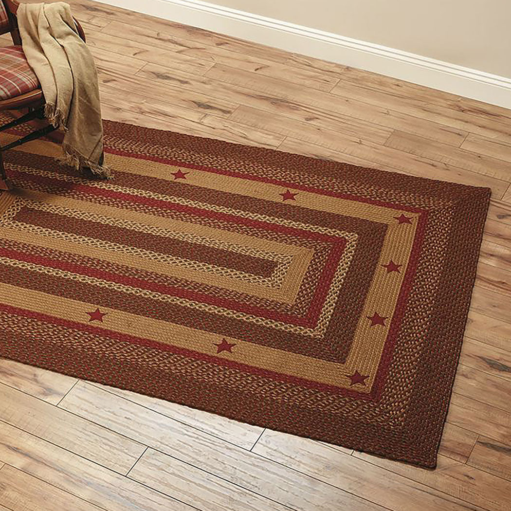 - RUSTIC EARTHY FEEL: The Cinnamon Star braided rectangle floor carpet enhances the look and feels of any floor space. It is thick enough to provide a soft feel and on your feet. The rustic appearance blends well with both modern and vintage furniture.
