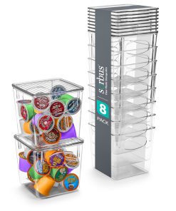 - Stacks to maximize space.