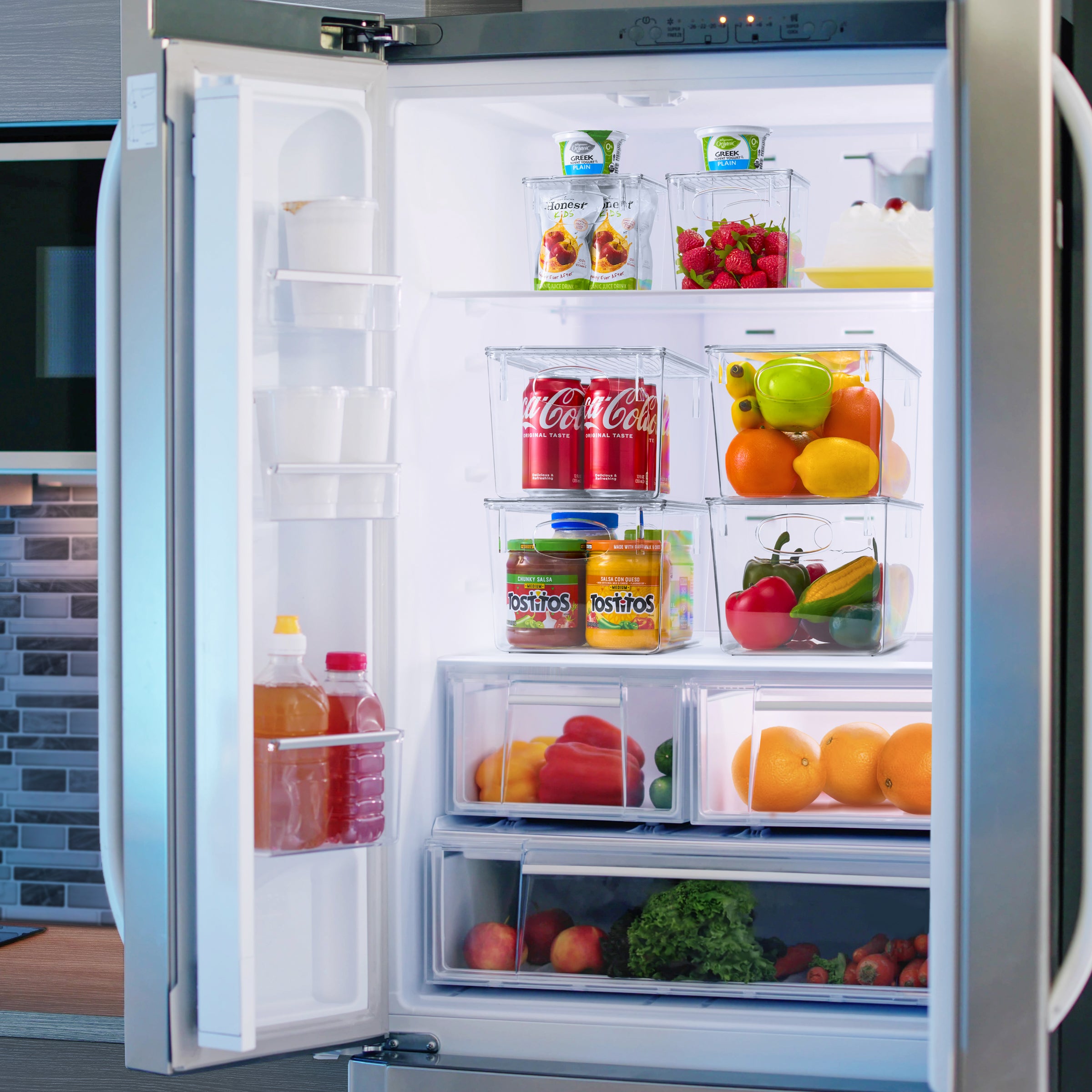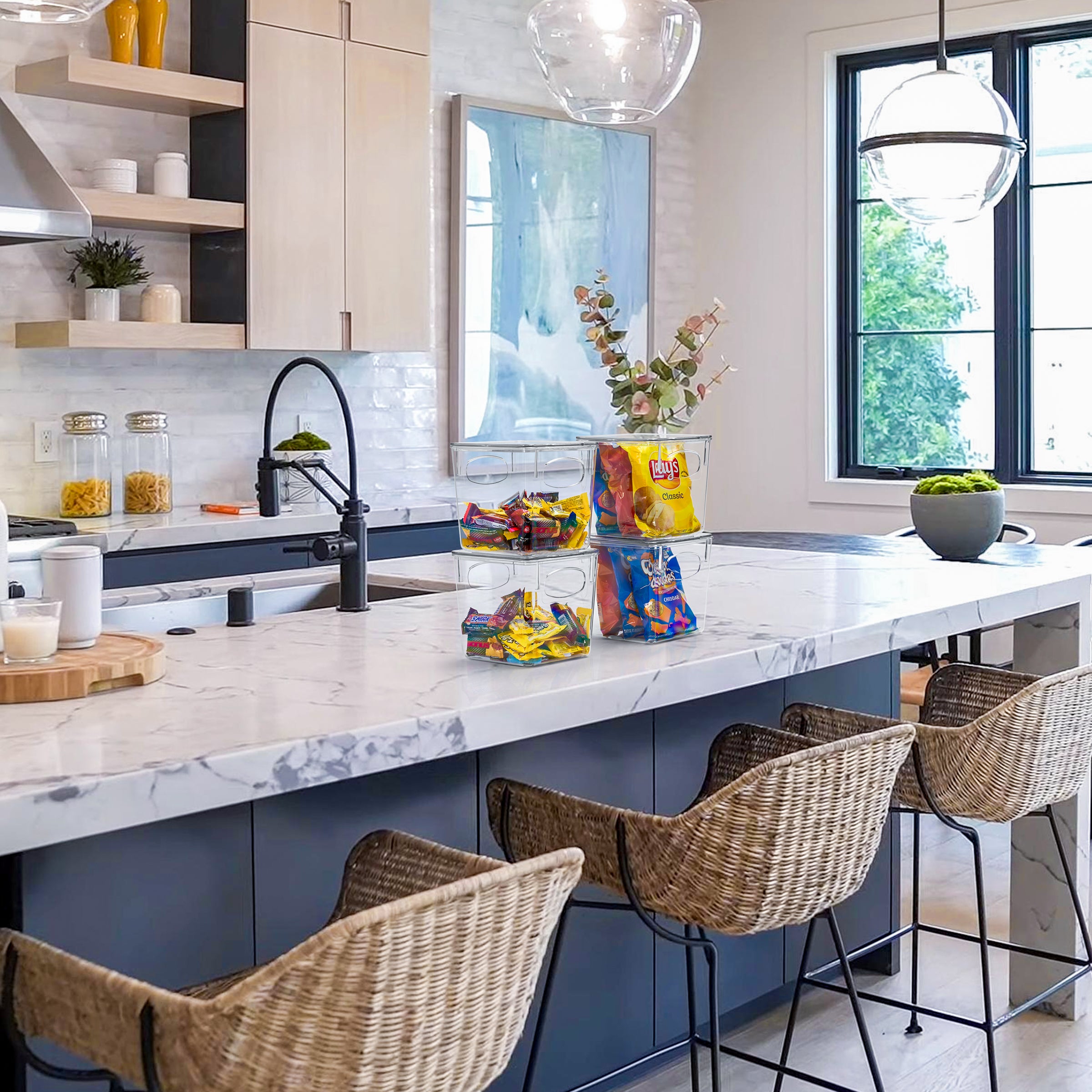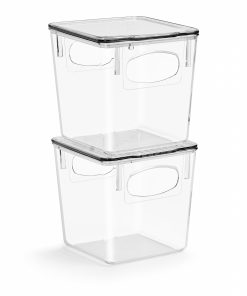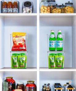 No more searching for that much needed ketchup bottle or juice box! Our Plastic Container Bin Set keeps your kitchen organized with a clear view. A translucent design allows you to quickly see what’s stored inside and group contents by type. Store anything from fruits and veggies in the fridge to packaged goods and supplies in the pantry. Built-in handles make it easy to pull off shelves and carry around the home. When paired with included lids, bins stack to maximize space. For versatility, use them without lids as catchalls or convenient drawer organizers. Now go ahead and enjoy your neatly organized space.