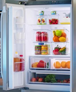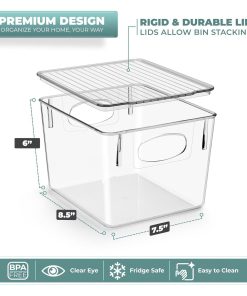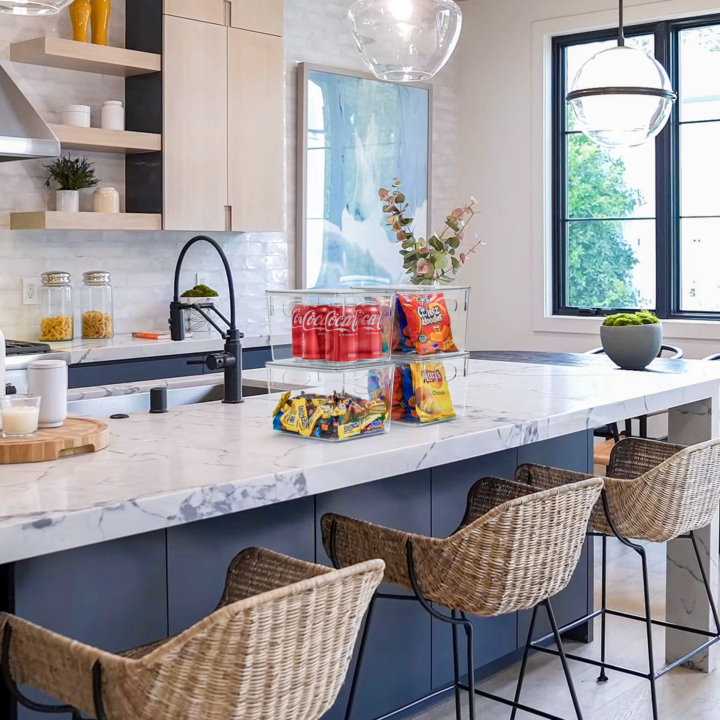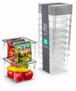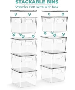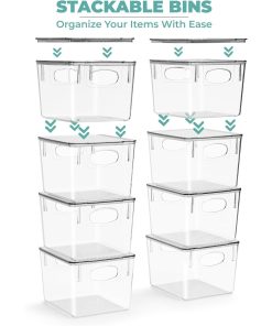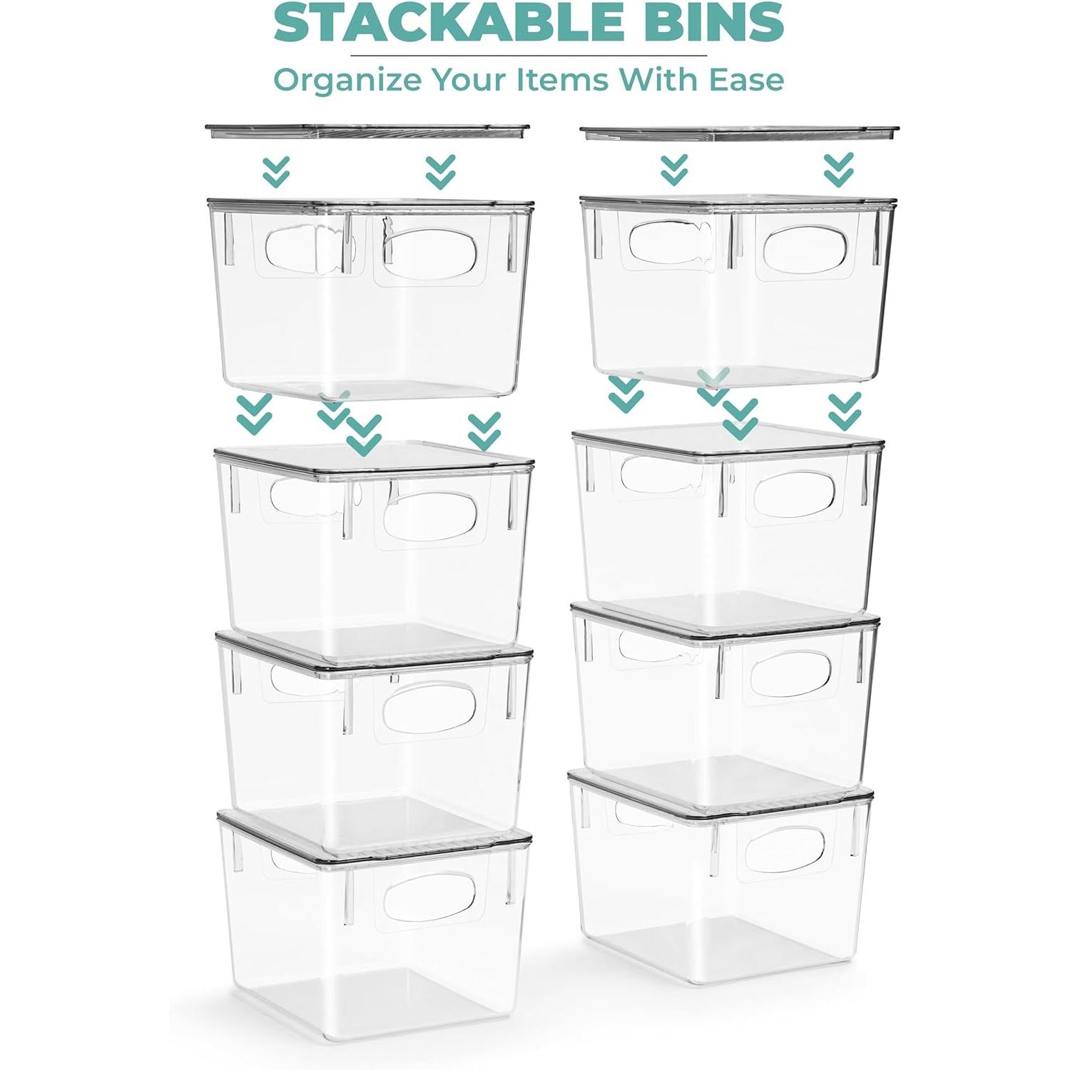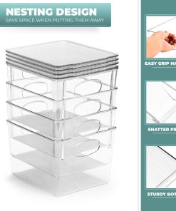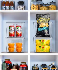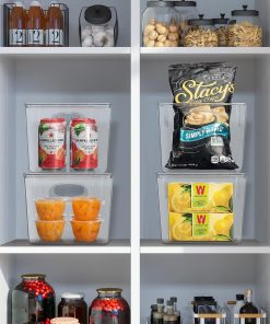 No more searching for that much needed ketchup bottle or juice box! Our Plastic Container Bin Set keeps your kitchen organized with a clear view. A translucent design allows you to quickly see what’s stored inside and group contents by type. Store anything from fruits and veggies in the fridge to packaged goods and supplies in the pantry. Built-in handles make it easy to pull off shelves and carry around the home. When paired with included lids, bins stack to maximize space. For versatility, use them without lids as catchalls or convenient drawer organizers. Now go ahead and enjoy your neatly organized space.
