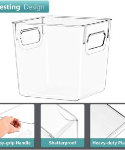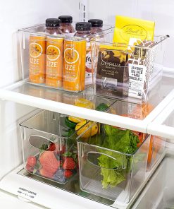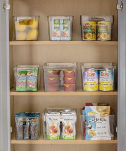 No more searching for that much needed ketchup bottle or juice box! This Storage Bin Set keeps your kitchen organized with a clear view. A translucent design allows you to quickly see what’s stored inside and group contents by type. Store anything from fruits and veggies in the fridge to packaged goods and supplies in the pantry. For multi-purpose use, hold bathroom toiletries and cleaning products. Built-in handles make it easy to pull off shelves and carry around the home or stack when empty. Most of all, enjoy your neatly organized space.
