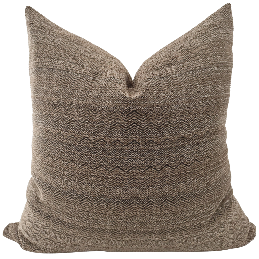 The Cocoa is a beautiful mixture of brown tones inspired by a warm cup of hot cocoa. This neutral pillow cover looks beautiful in so many spaces with any home style you may have. Pair with muted colors for a moody look or with whites for a minimal look.