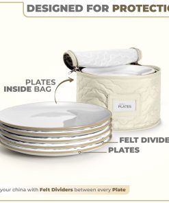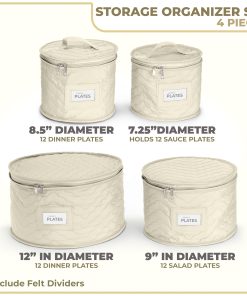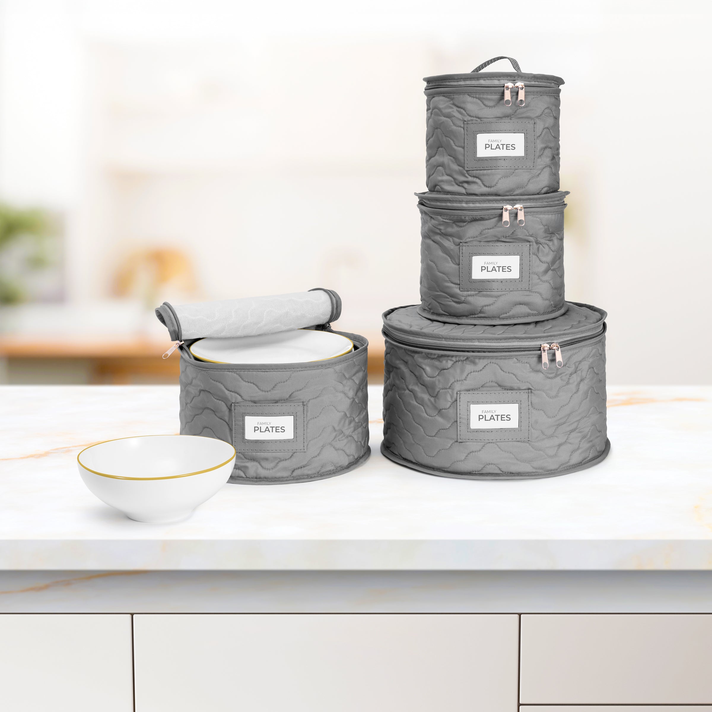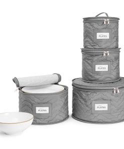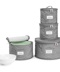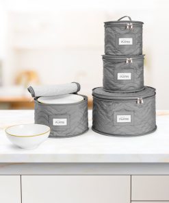 Store and organize cherished dinnerware and fine china with quilted 4-piece storage case set, it includes a quilted cases shield against dust, dirt and stains. It includes cardboard dividers to keep glassware and mugs secure.