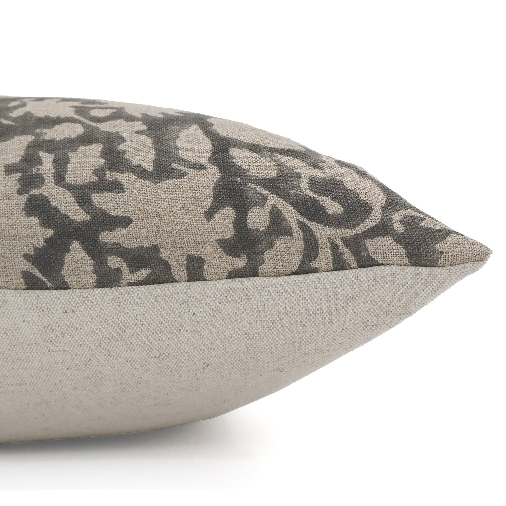 Dove Gray Floral Block Print pillow cover is from our Block Print Collection of authentic vegetable dyed fabric &hand pressed to create their unique design. The perfect linen beige & gray color offers a transitional style that will pair beautifully with many pillows from the shop. This pillow cover is made out of hand dyed woven fabric and is perfectly imperfect in its design.