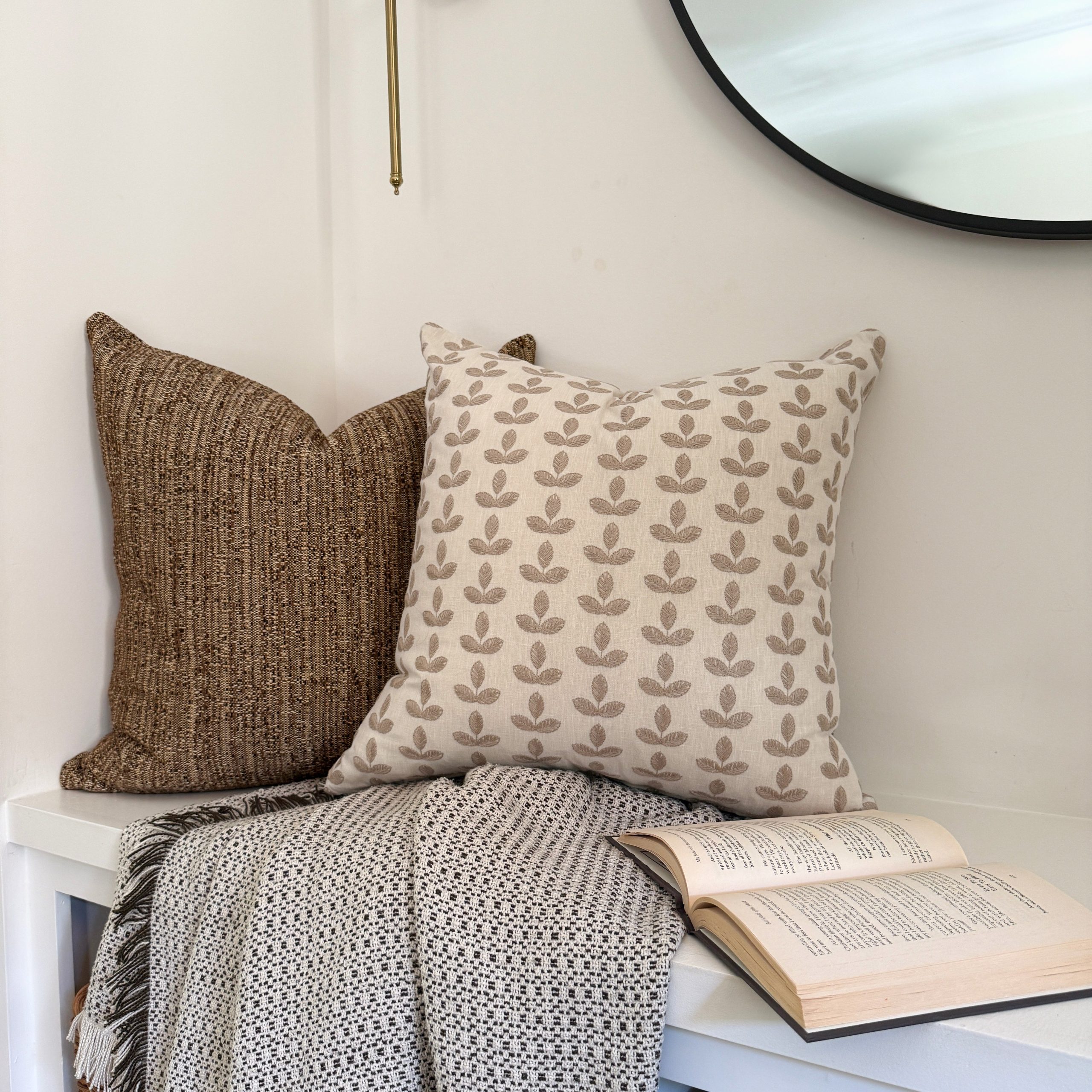 (1) 20×20 Stitched Leaves Taupe | Same Back