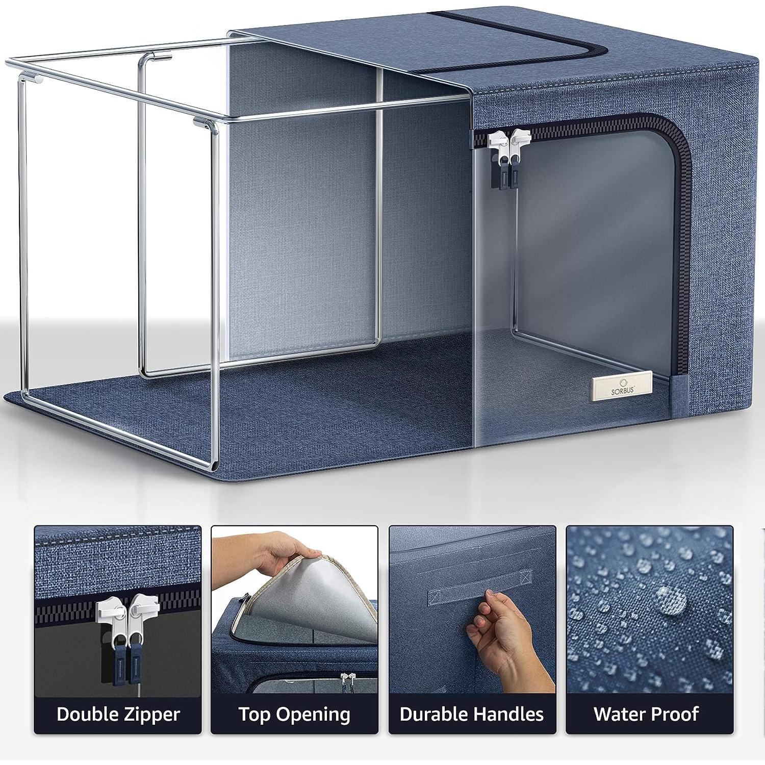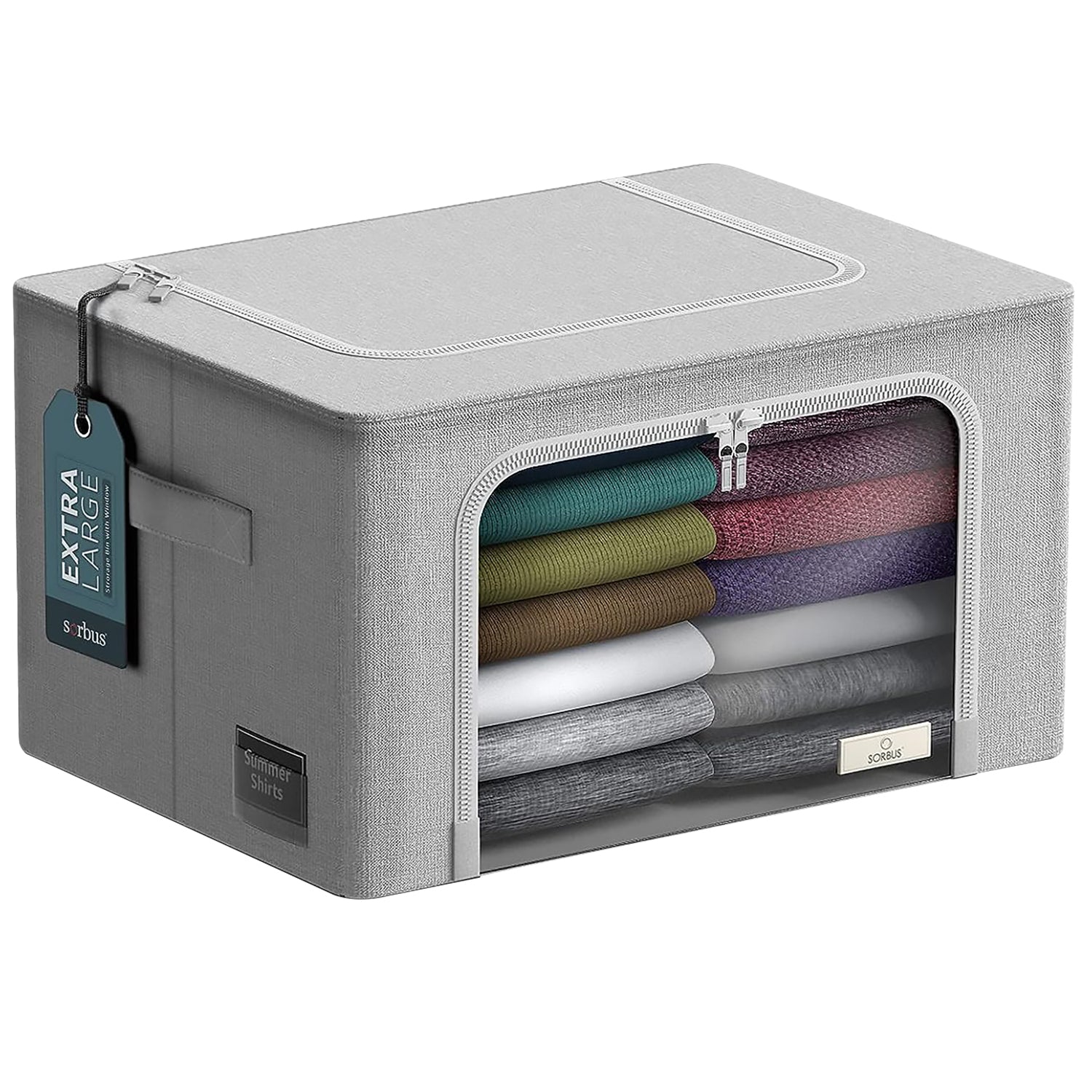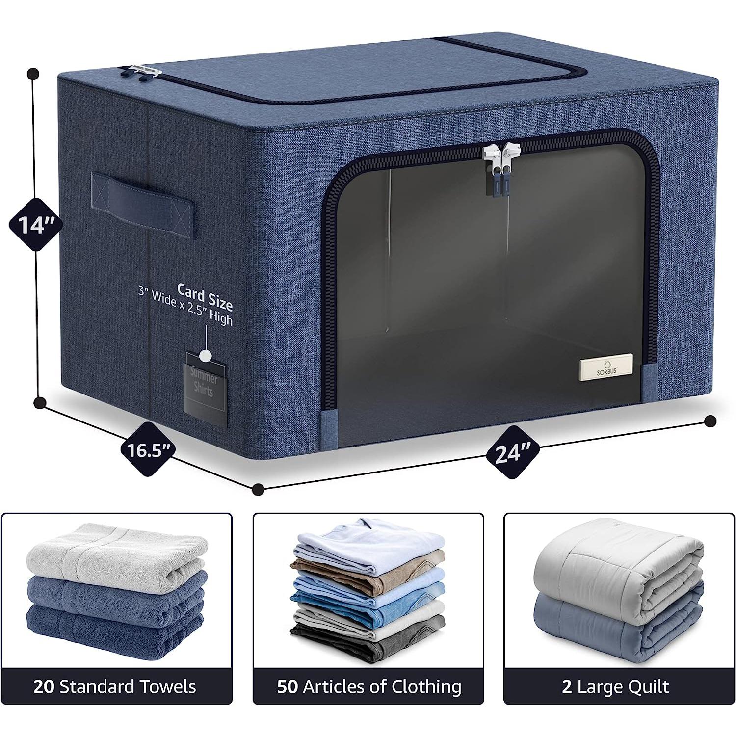 Pack, zip, and transport household essentials with this jumbo stackable storage bin, featuring a clear view and metal frames. With its front and top zipper opening makes it easy to store and remove contents. It’s sturdy frame stacks above/beneath additional organizers.