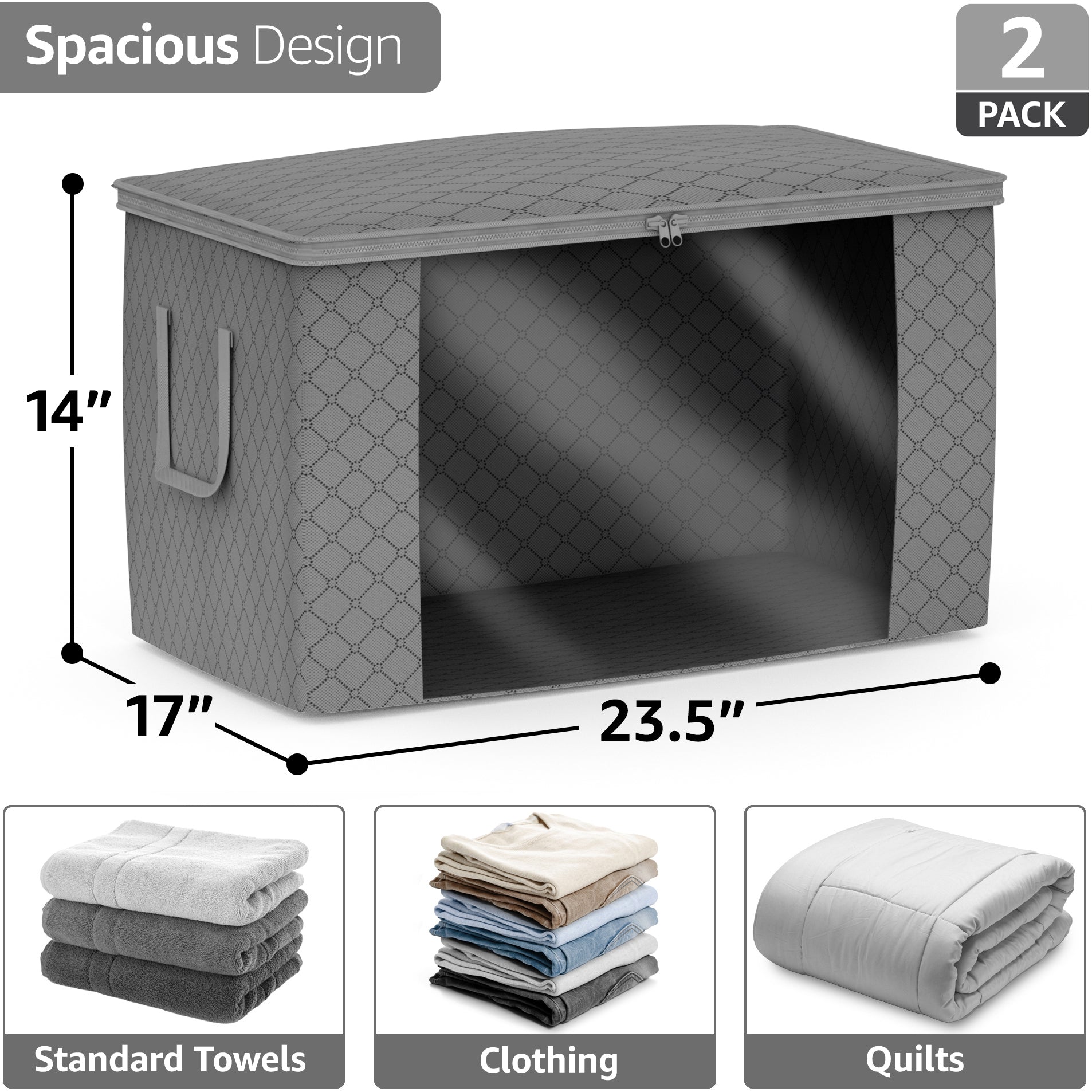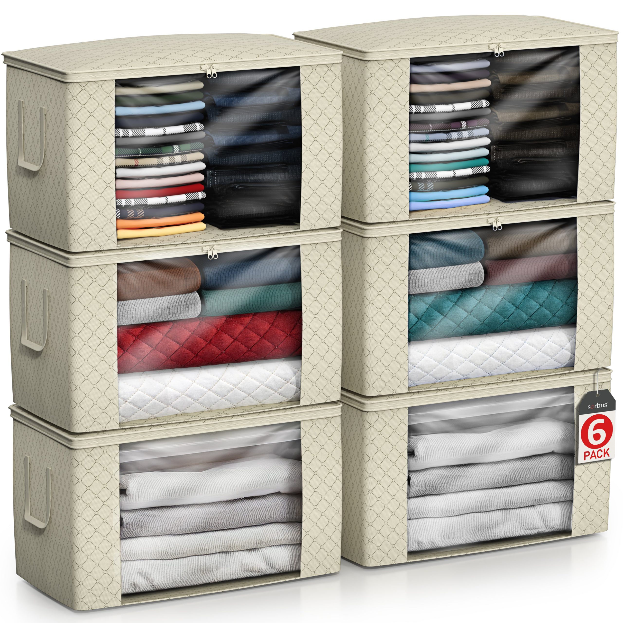 Pack, zip, and transport household essentials with a clear view! The Sorbus Storage Organizer Bags store and protect your seasonal items and apparel. carry handles, and transparent side windows to see contents at a glance. Generously sized compartments provide plenty of room for clothing storage, blankets, linens, holiday decorations, toys, photos, baby clothes, or to use as saree bags. A fully zippered closure protects from dust, pest, and water damage while securing contents in your home, car, or office. Don’t let limited closet space cramp your style! Store out-of-season or infrequently used items with ease. Traveling or moving? Easy-carry handles make these bags portable and convenient for transporting to new locations. Easily view contents through transparent side windows while packing the car for a long trip or unloading the U-Haul for a seamless move. Breathable fabric protects against dust and pests while allowing airflow to keep items fresh.