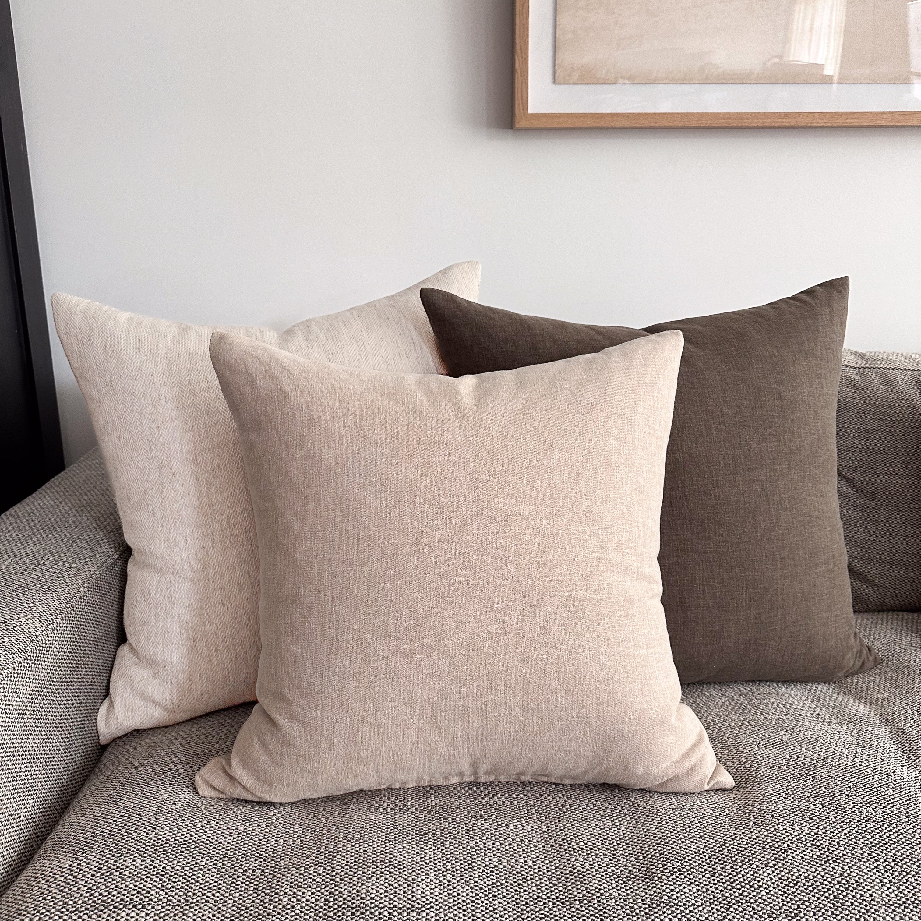 F I T: A 20″x20″ pillow cover with a 22″x22″ pillow insert for a full look.