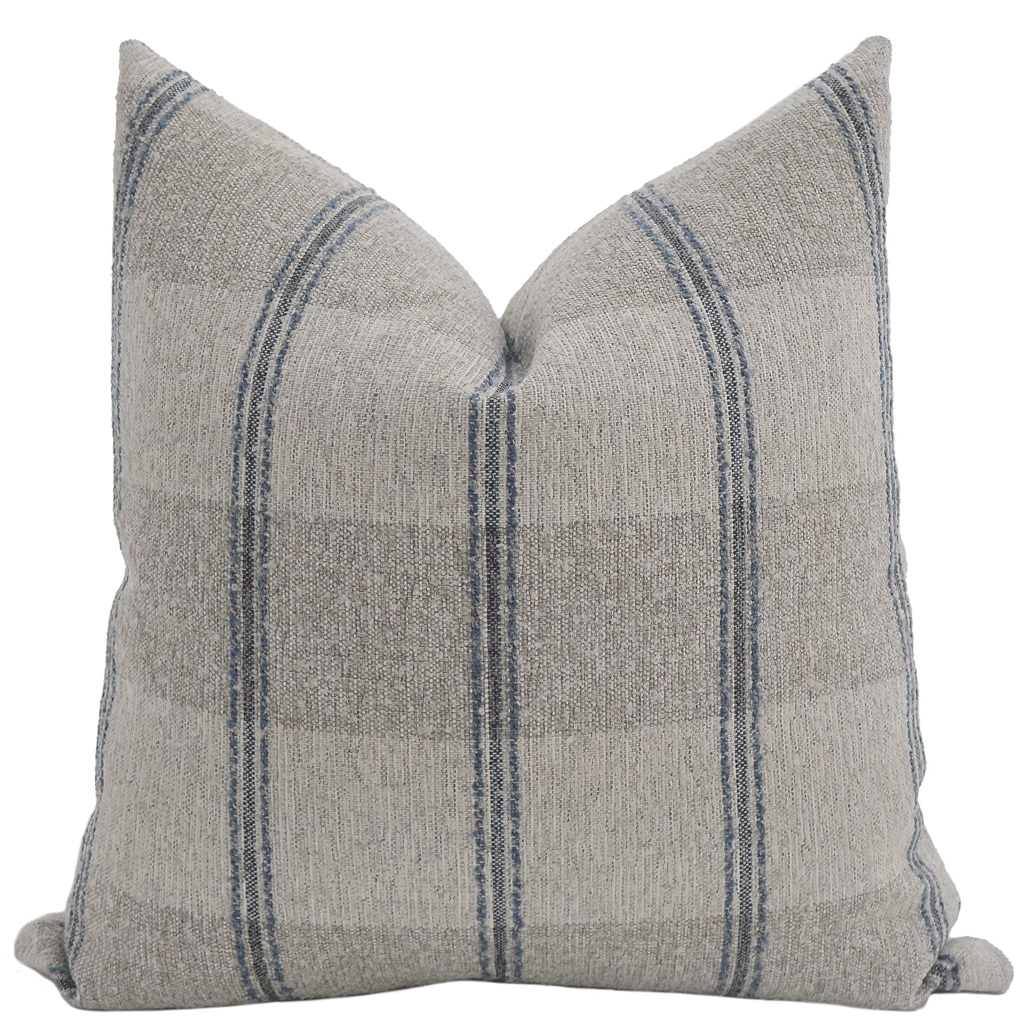 Elevate your space with the Mesa Stripe in Blue — a handmade decorative pillow cover that embodies quiet luxury and modern organic style. Crafted by HACKNER HOME, this high-end pillow cover is designed for those who appreciate artisan quality and understated elegance. The soft neutral tones and warm brown stripes create a timeless aesthetic, making it perfect for luxury living spaces with a natural, curated feel. Made with premium upholstery-grade fabric, each cover is sewn with care to bring texture and warmth to your home. Ideal for layering on sofas, accent chairs, or beds, the Mesa Stripe pairs beautifully with other handcrafted pillows for a custom designer look.