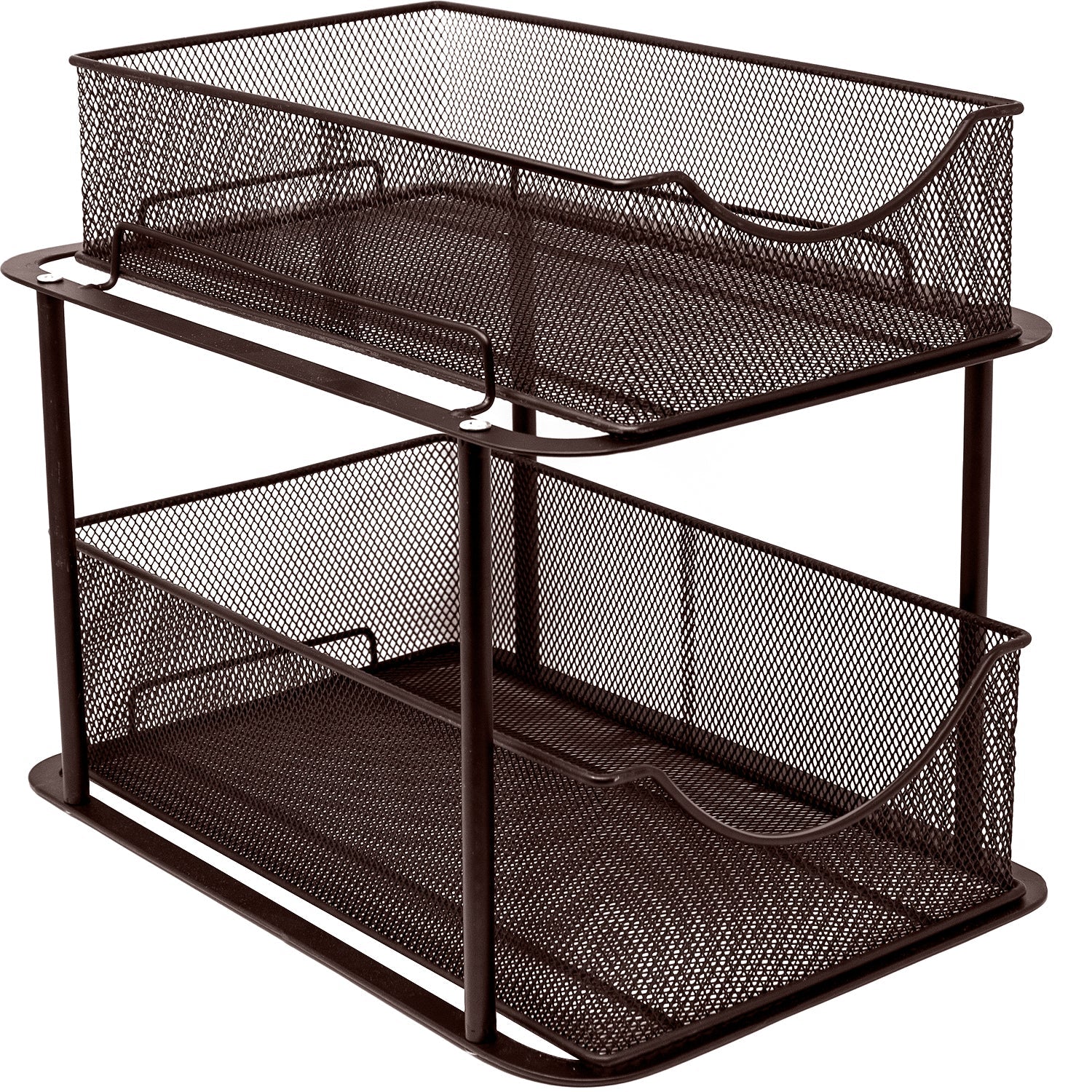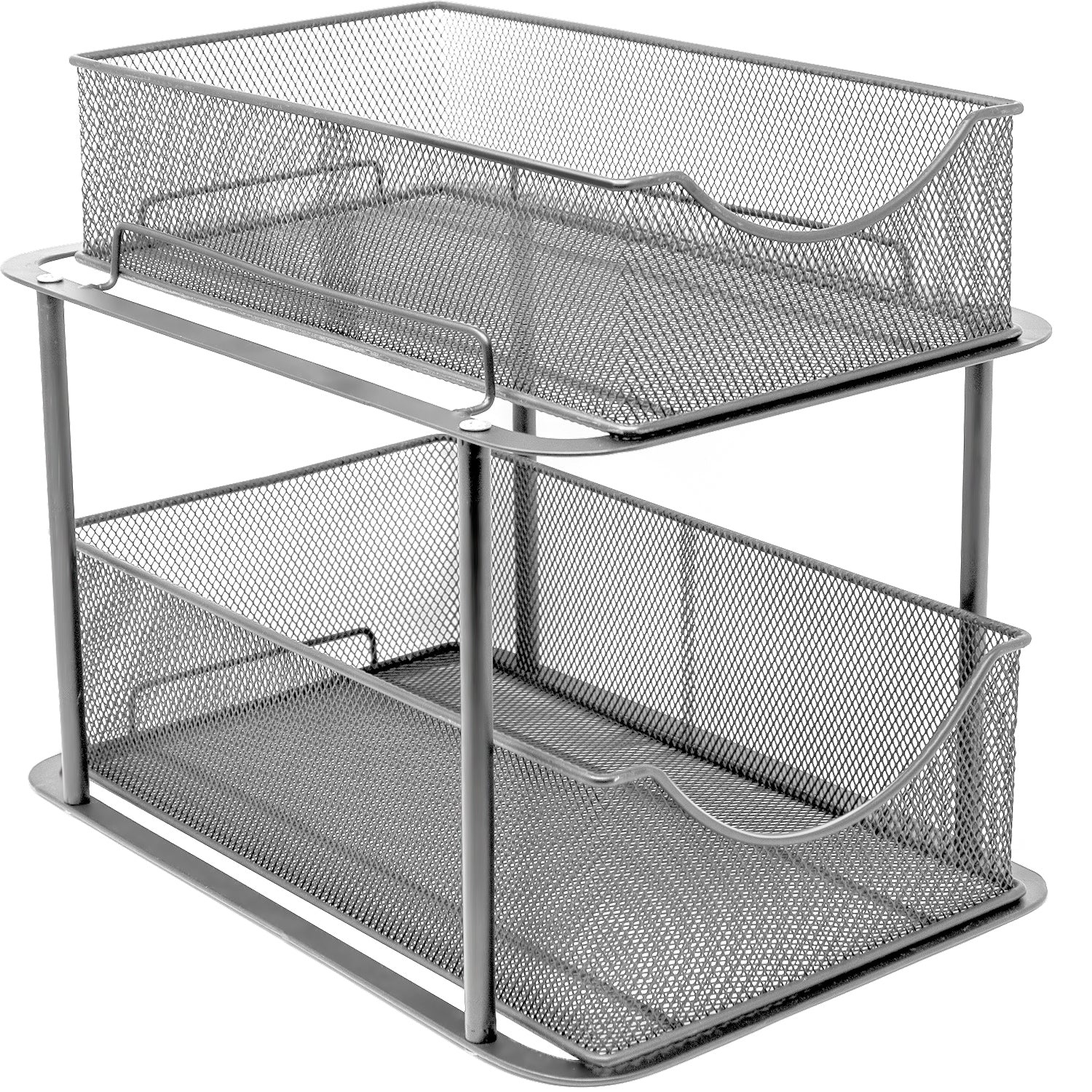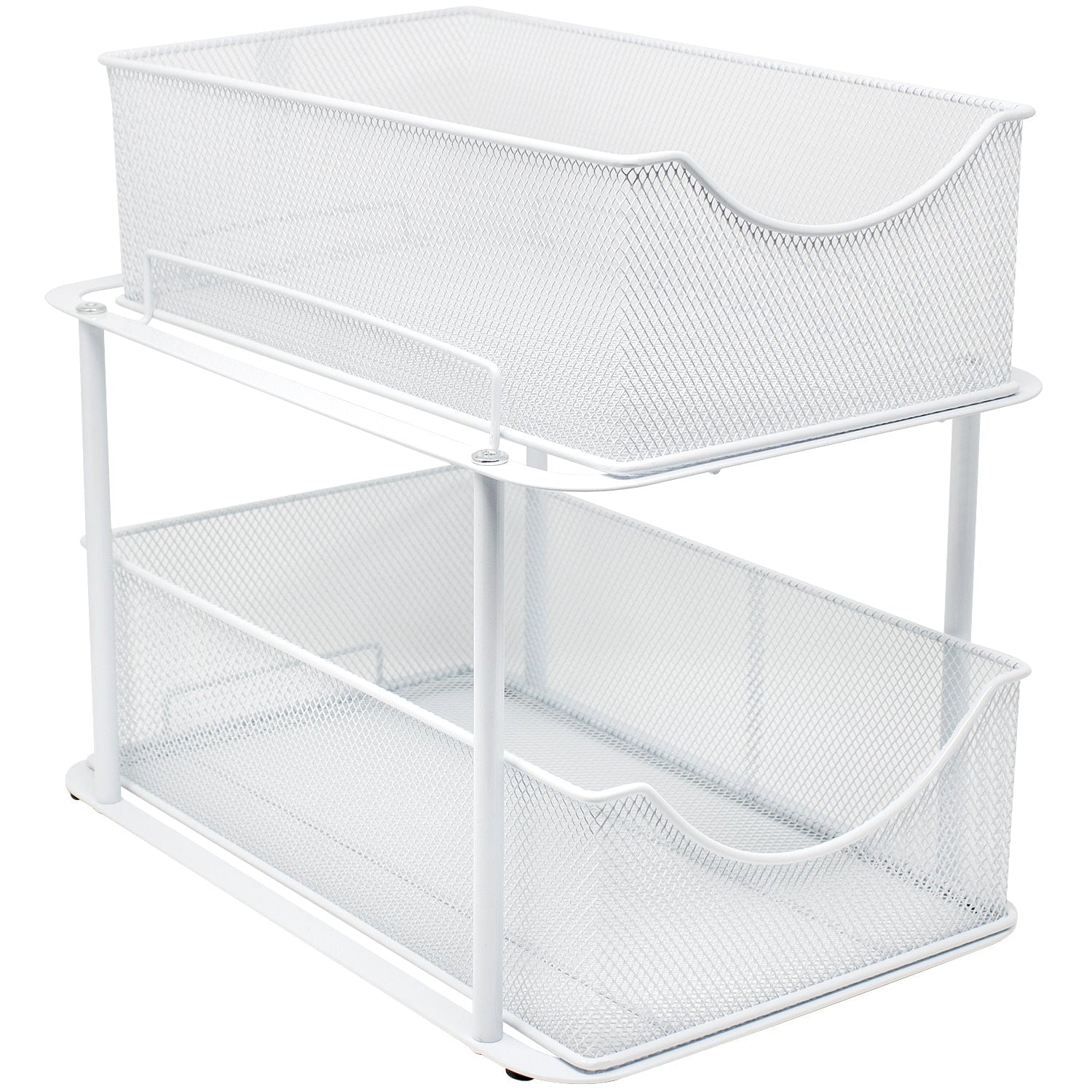 Are you tired of digging through clutter to find household items? Quickly access cleaning supplies, spices, produce, or office supplies with the Sorbus 2-Tier Basket Organizer. The two-level design maximizes your storage space, bringing items front and center with pull out drawers. For kitchen organization that fits your every need, turn your tight spaced pantry into an organized spice collection. Create storage in lower cabinets for canned goods and baking supplies or under the sink for cleaning products and miscellaneous items. The possibilities are endless!