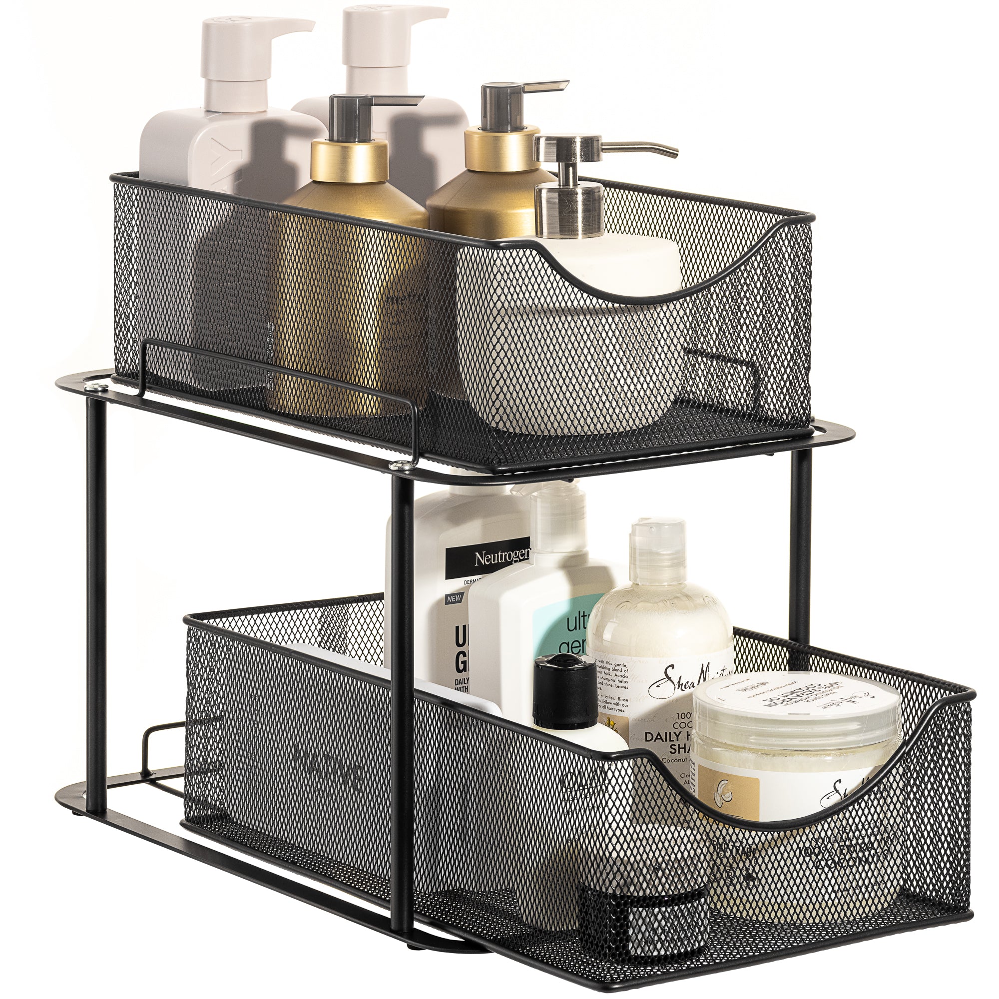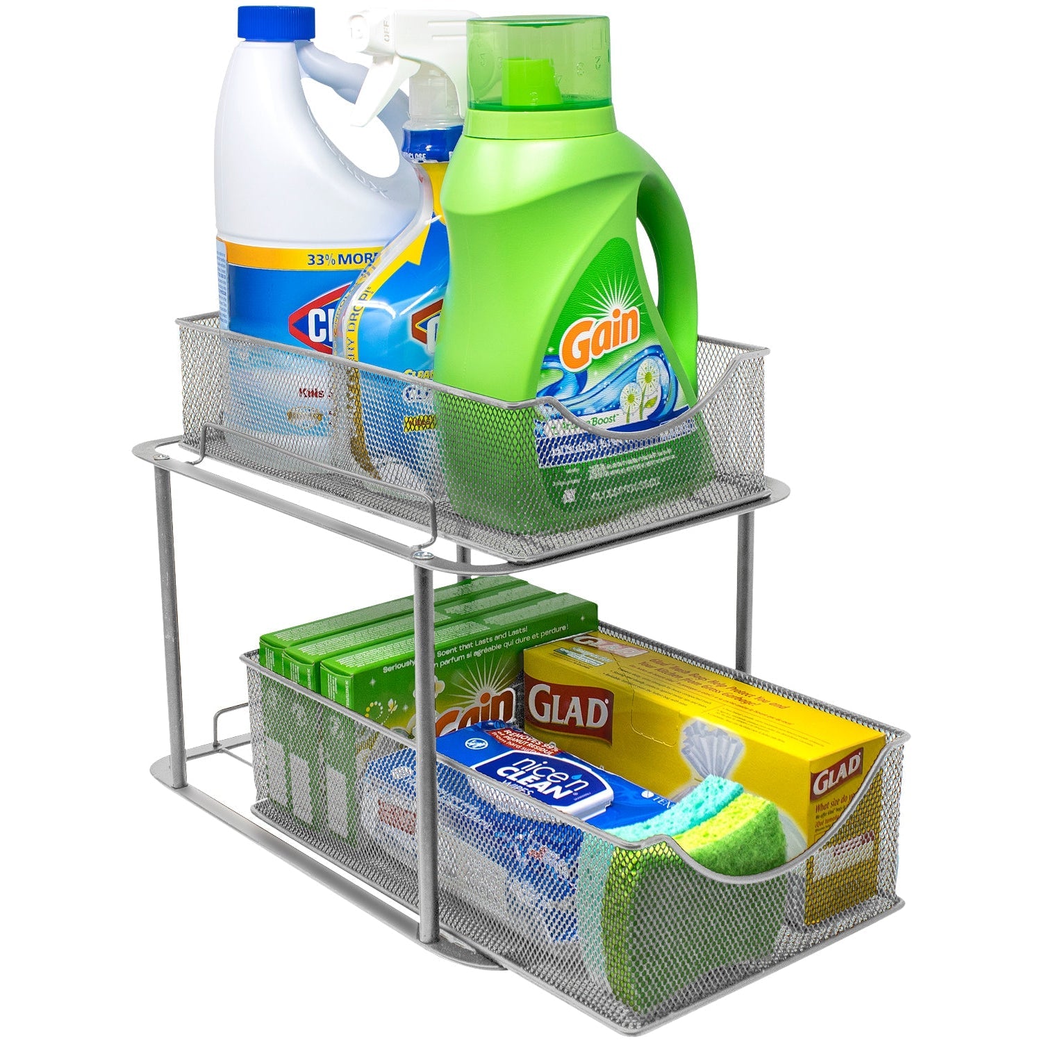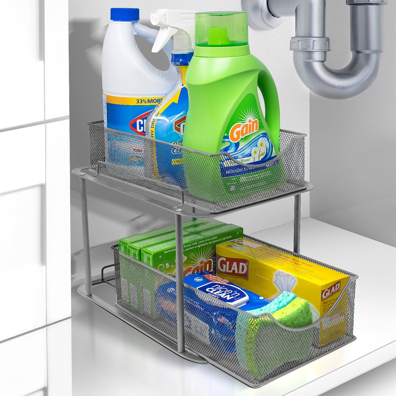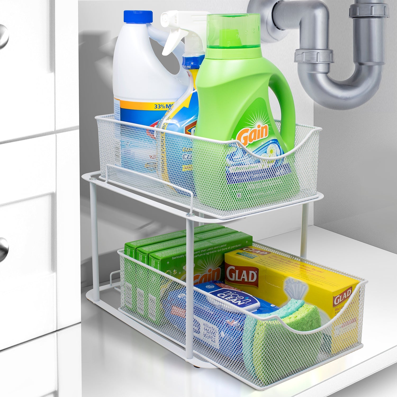 Are you tired of digging through clutter to find household items? Quickly access cleaning supplies, spices, produce, or office supplies with the Sorbus 2-Tier Basket Organizer. The two-level design maximizes your storage space, bringing items front and center with pull out drawers. For kitchen organization that fits your every need, turn your tight spaced pantry into an organized spice collection. Create storage in lower cabinets for canned goods and baking supplies or under the sink for cleaning products and miscellaneous items. The possibilities are endless!