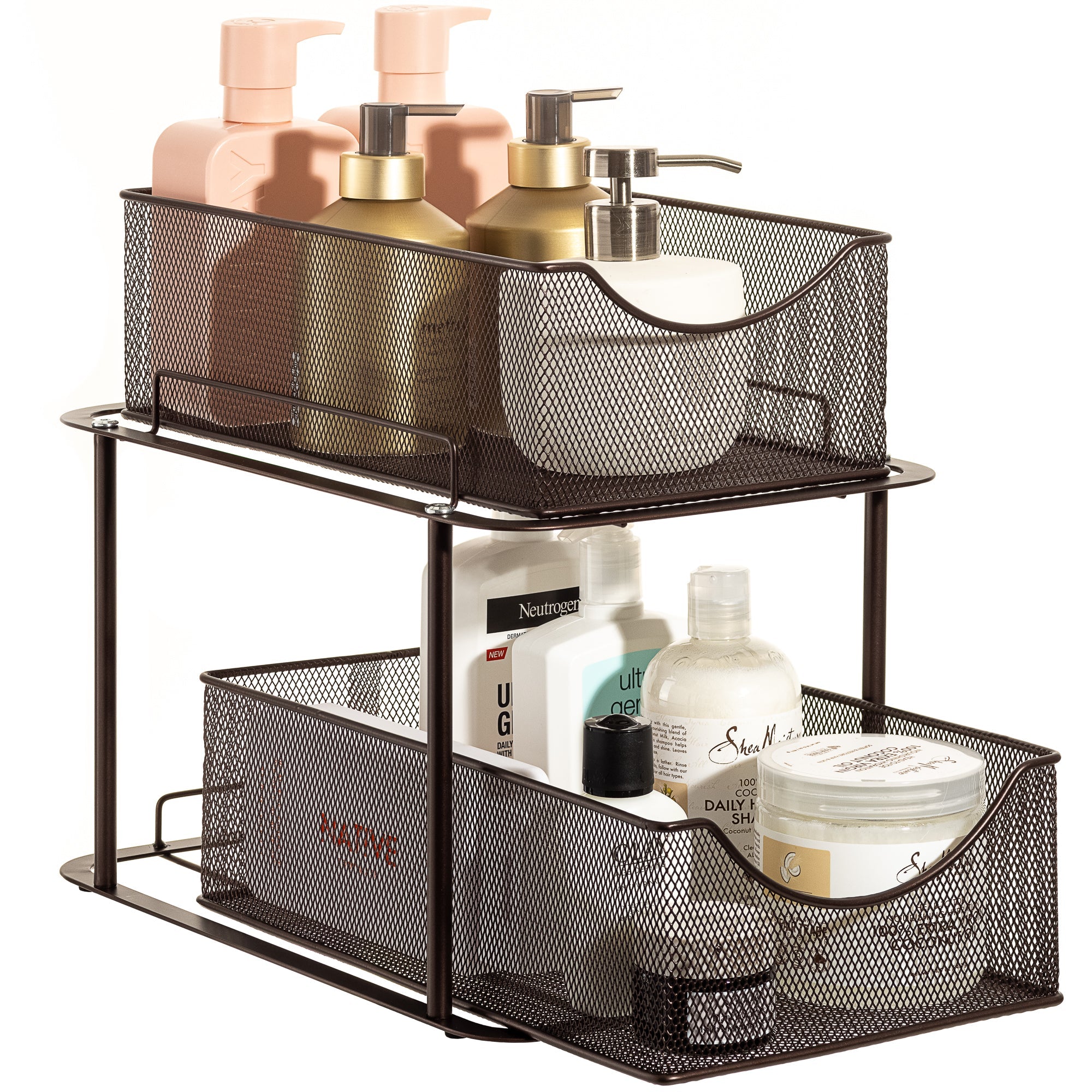 - 2-tier basket organizer for household storage.