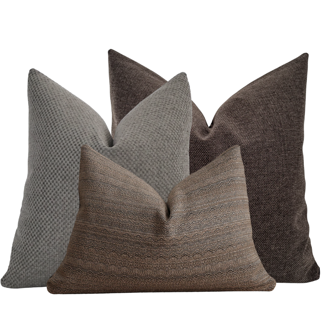 Soft, earthy tones and subtle pattern play. The Muted Tones pillow cover set allow each pillow to stand on its own while working effortlessly together. Its organic style grounds the set and offers depth, softness, and timeless appeal. The result is a composition that feels collected over time—never styled, always intentional.