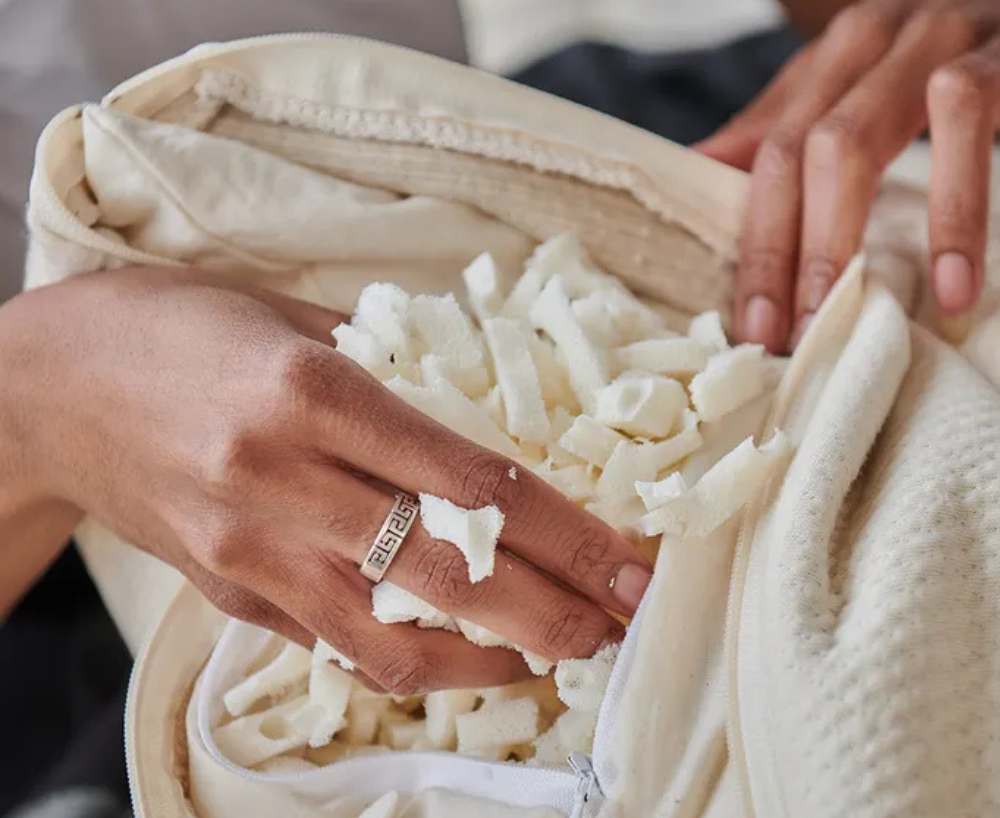 This adjustable latex pillow is unabashedly comfy since you choose how it feels. Wrapped in our signature organic stretch-knit cotton, the cool, breathable GOTS-approved latex fill is fully customizable with an easy-access zipper. Machine washable outer cover, too! Winner of the Good Housekeeping “Best Overall Organic Pillow” in 2023.