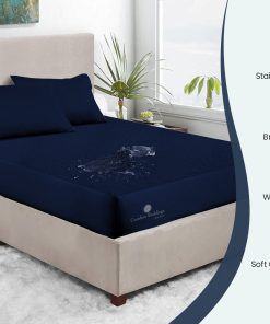 Our Navy Blue Terry Mattress Protector is waterproof and prevents spills, odor-causing bacteria, stains perspiration, and leaks from getting through to your mattress.