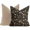 The highlight of the collection is the hand block print floral pillow cover, crafted in deep fall green tones that evoke the natural elegance of autumn. Paired with a solid designer pillow in earthy brown linen and a refined striped pillow in soft taupe and warm white, this trio offers a layered, sophisticated look that feels both modern and timeless.