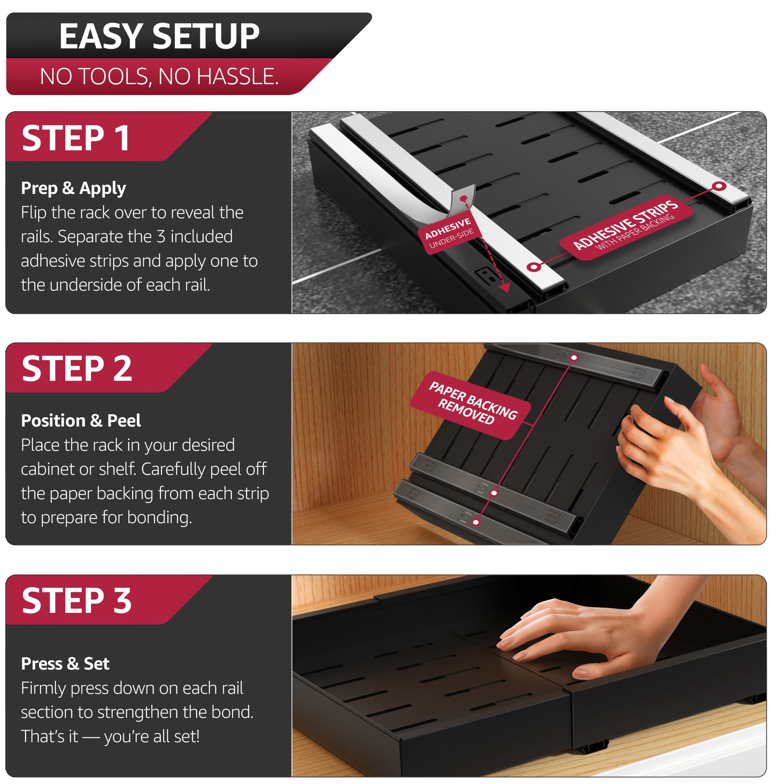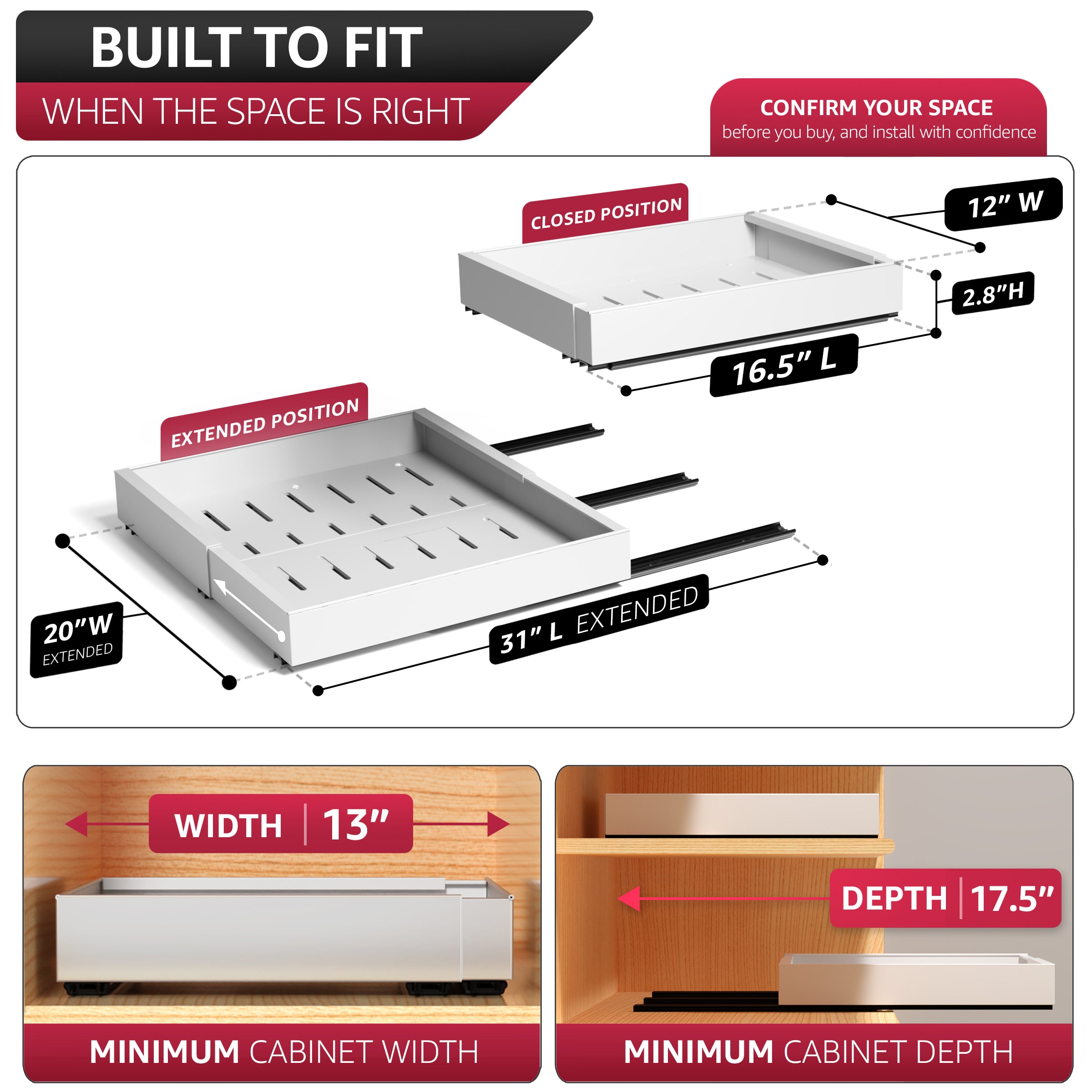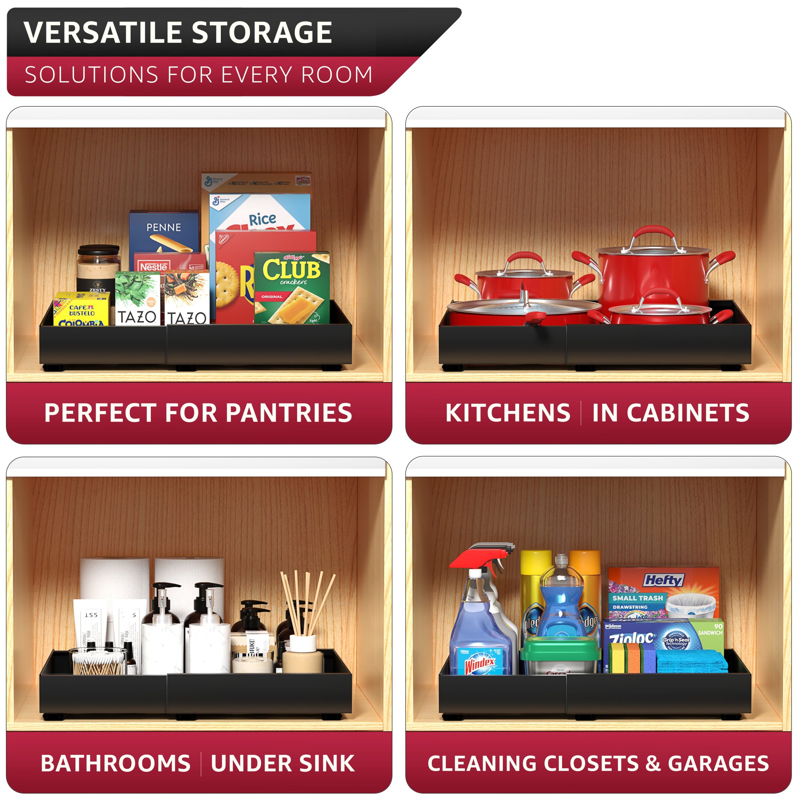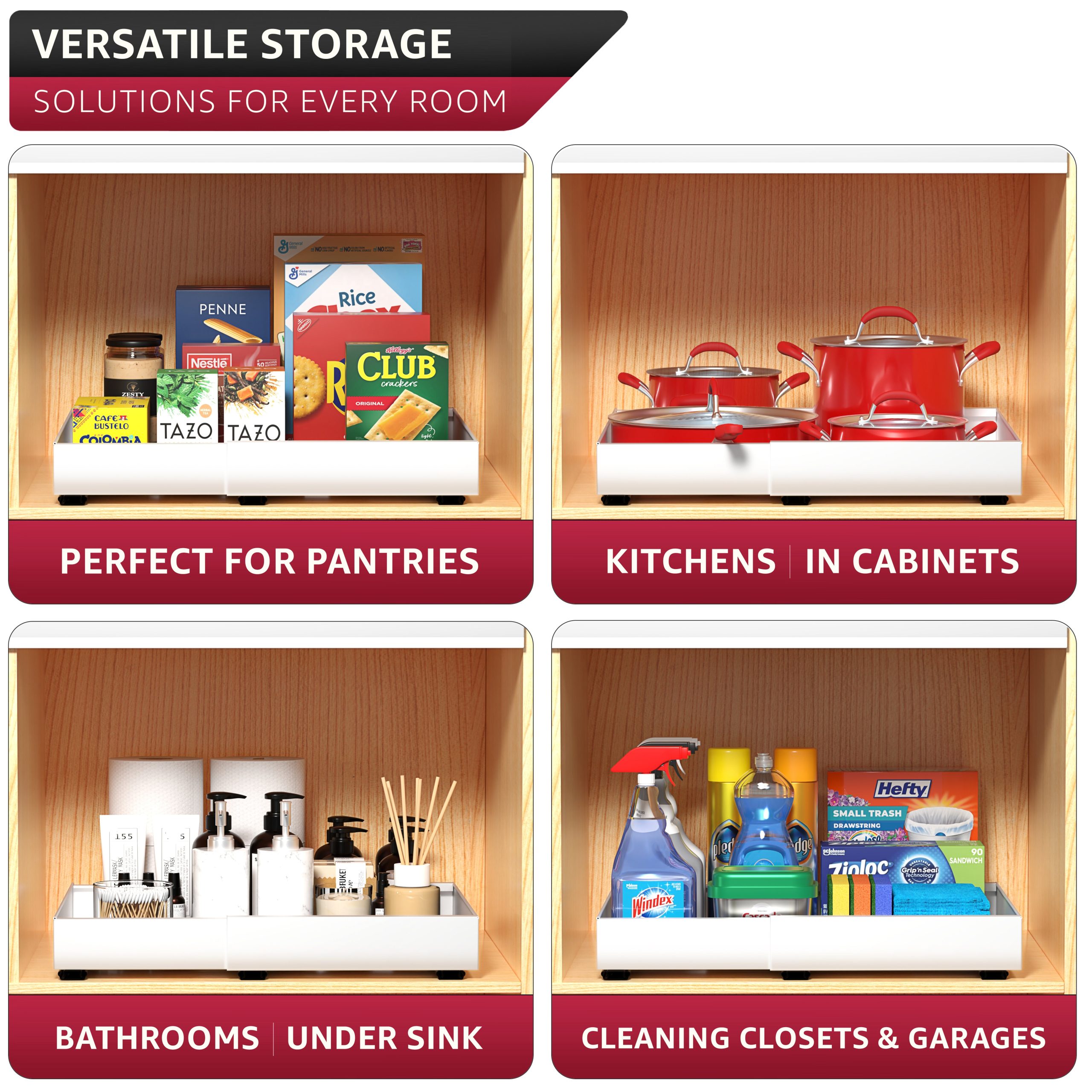 Extendable Pull-Out Storage Rack with Sliding Tracks Set of 2