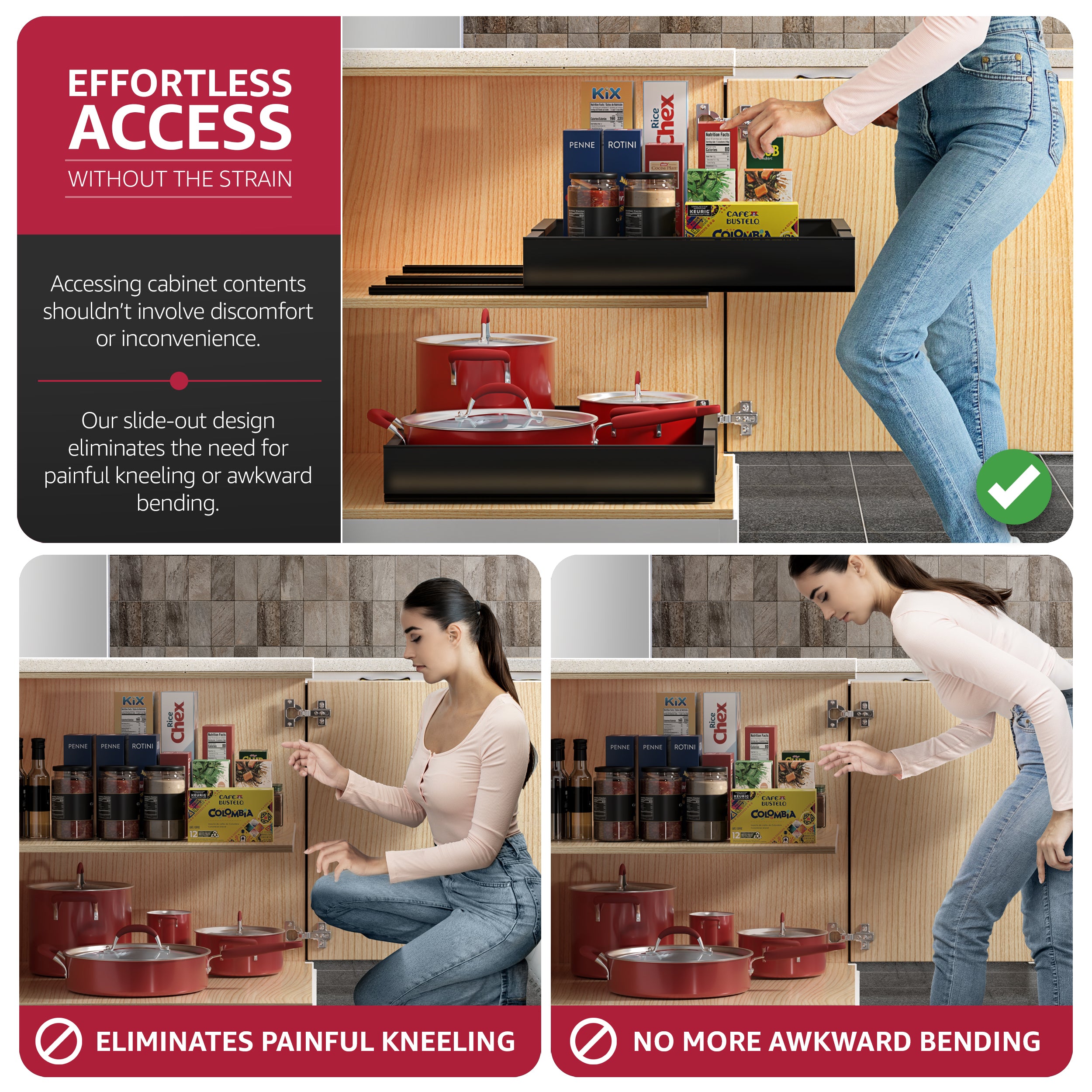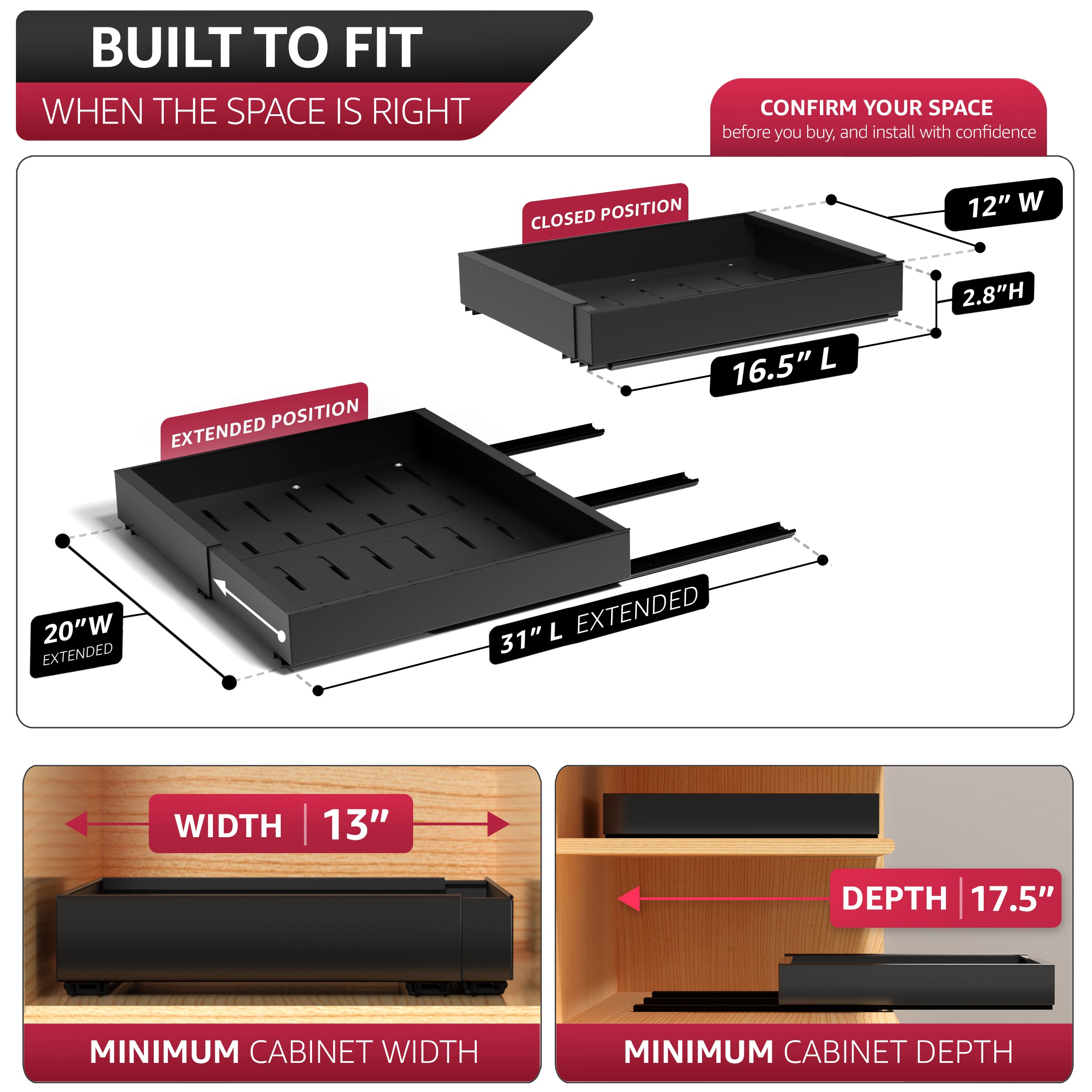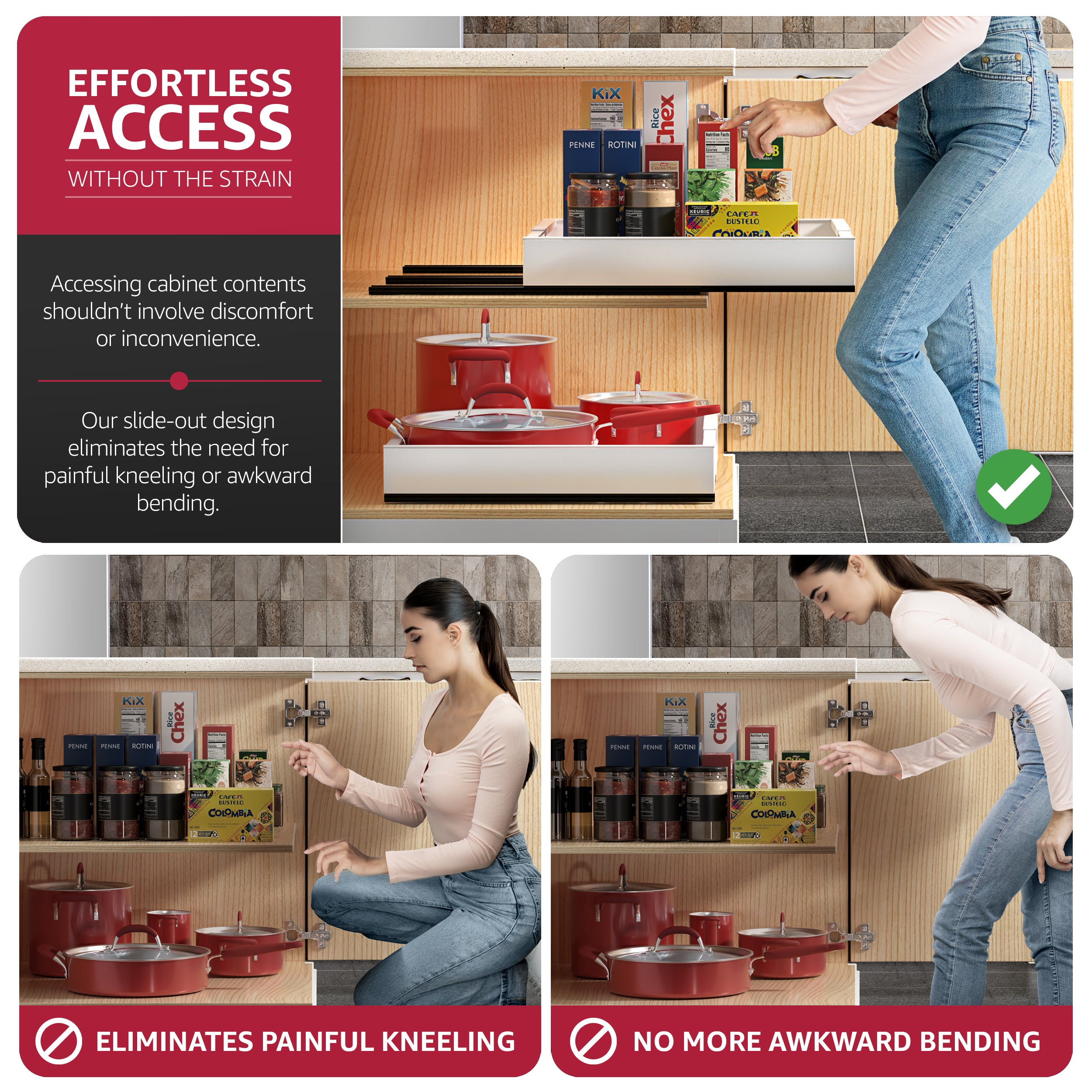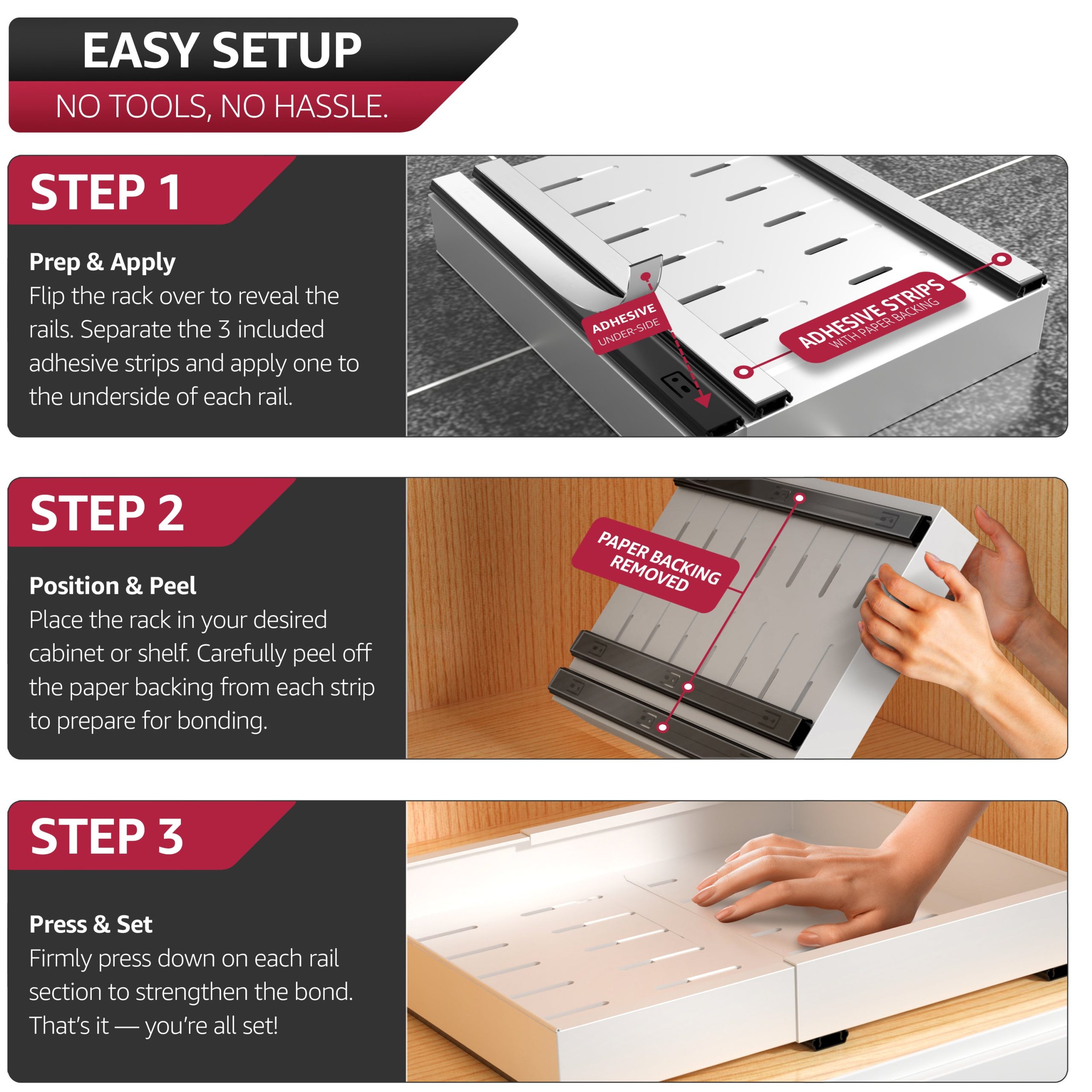 Extendable Pull-Out Storage Rack with Sliding Tracks Set of 2