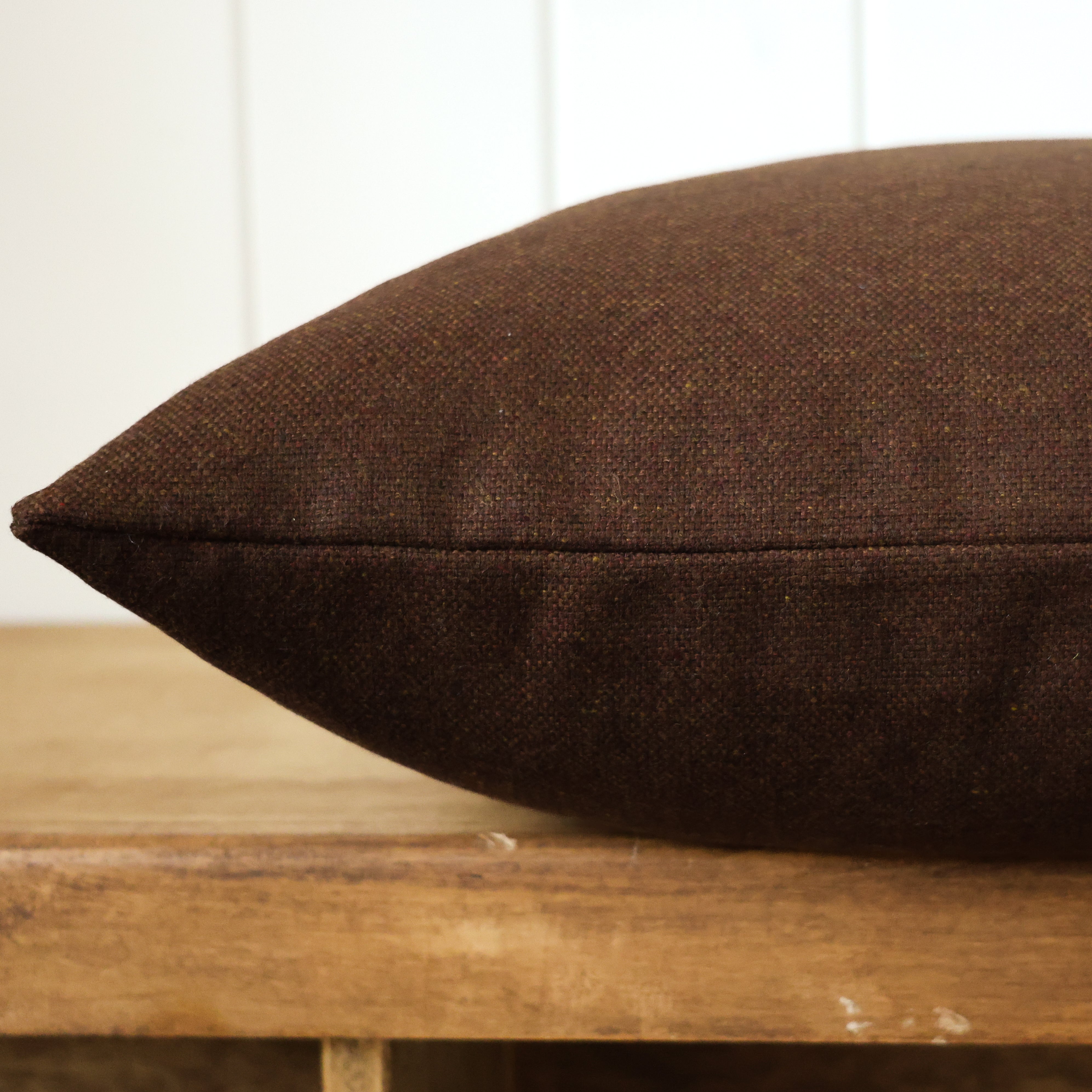 The Pumpernickel Wool Plaid Pillow Cover, a designer piece crafted from fine wool fabric that perfectly captures the essence of the cool weather season. Featuring a rich, deep hues in a classic solid design, this pillow cover brings a touch of timeless elegance and cozy warmth to your space. The luxurious wool fabric offers rustic charm, making it an ideal accent for both traditional and modern interiors. Perfect for layering, this pillow cover enhances your home with a sophisticated, autumnal vibe.