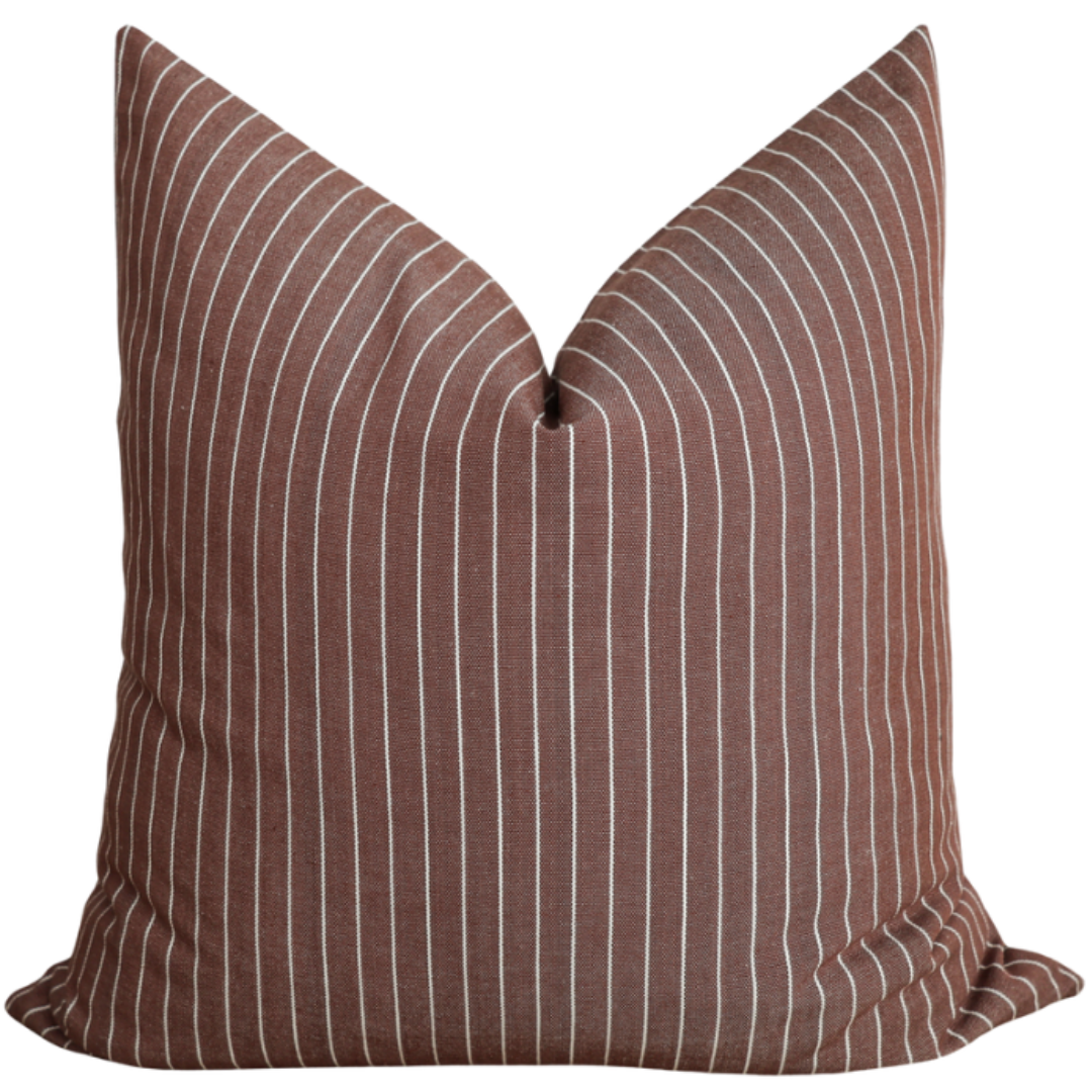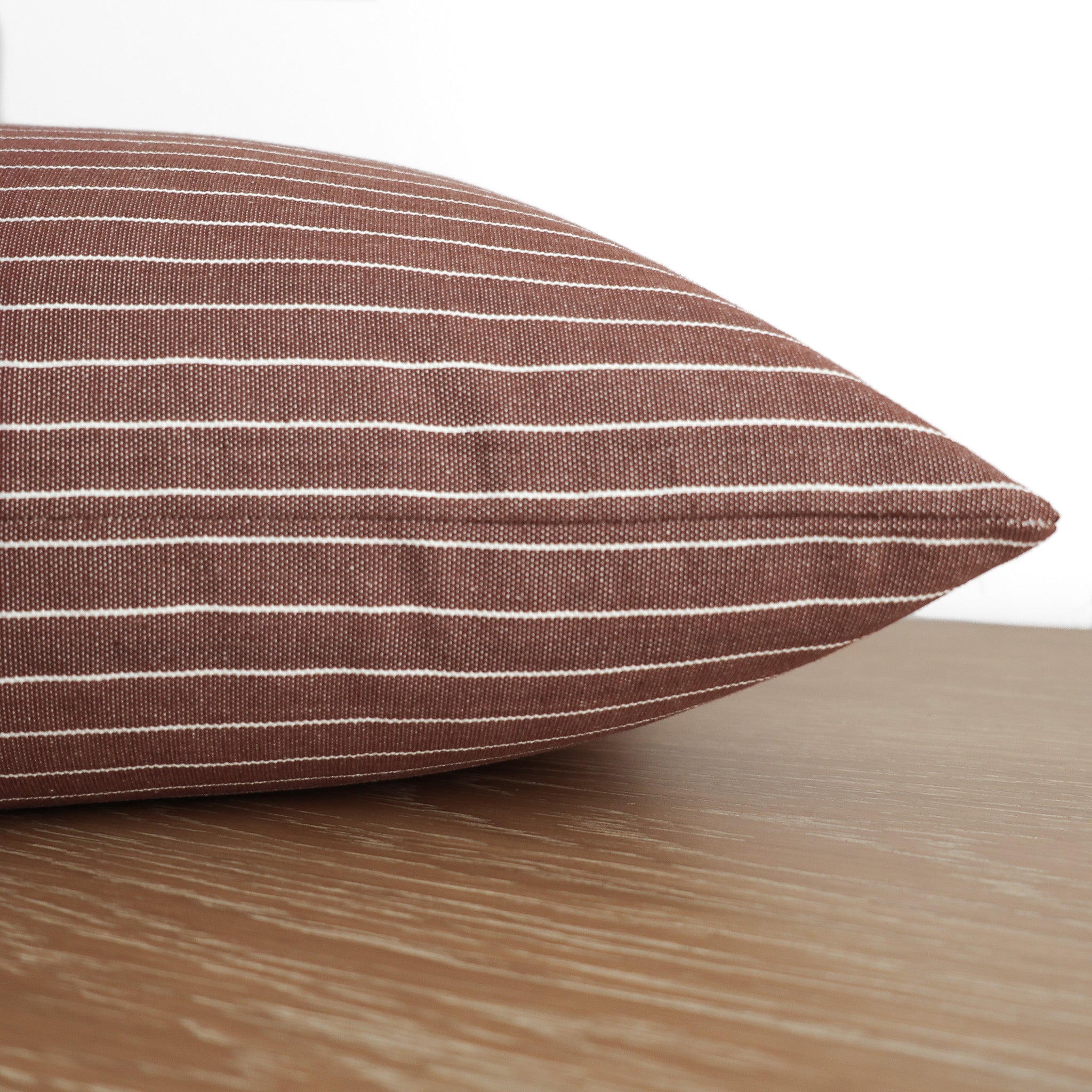 Embrace the warmth of the season with our Red Plum Stripe Pillow Cover, a timeless woven stripe design that brings the rich tones into your home. Crafted from high-quality designer fabric, this pillow cover combines a sophisticated, rustic charm.