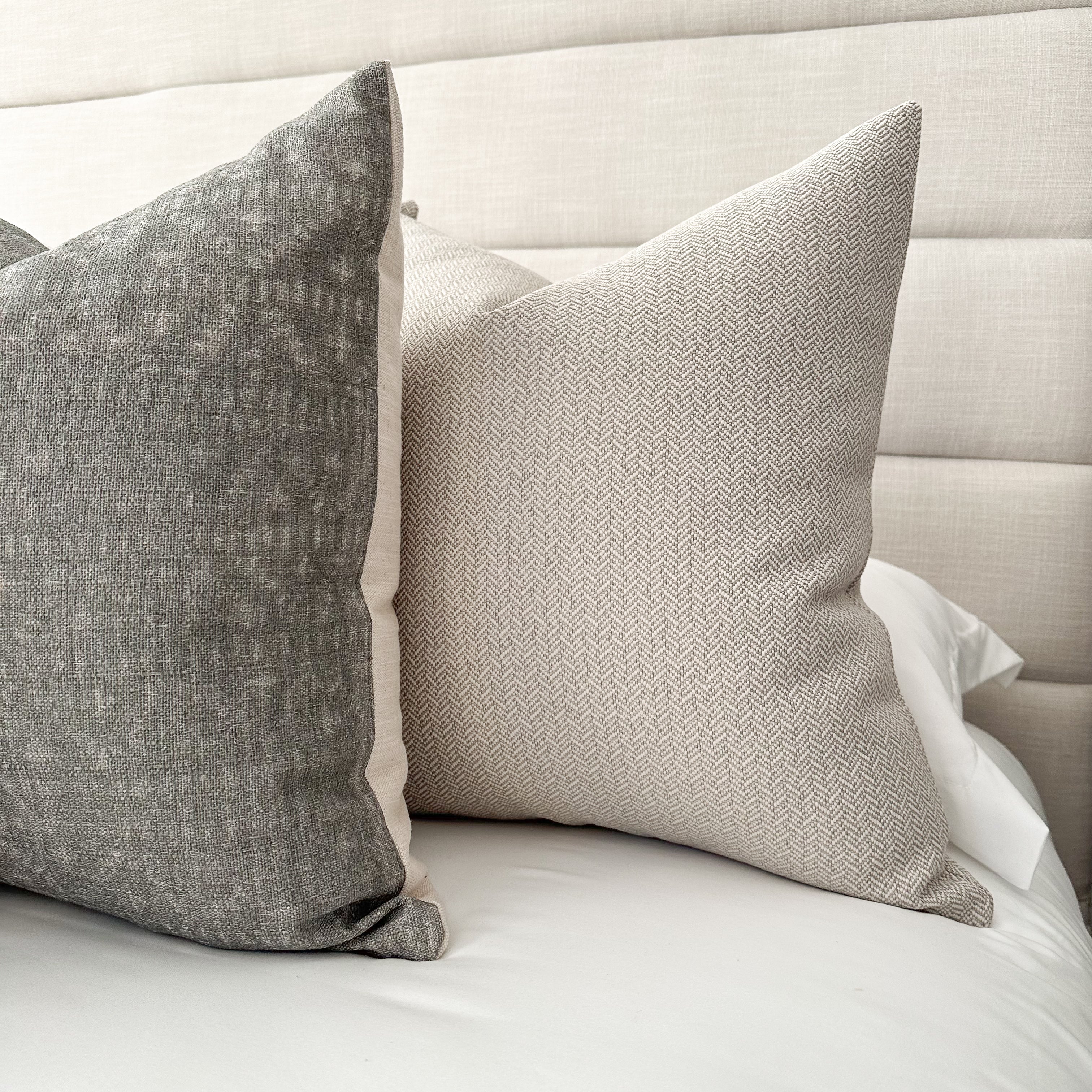 Reed Parchment features a cream textured weave. Its neutral color gives an elegant feel to any space. Mix and match with other pillows of your choosing.