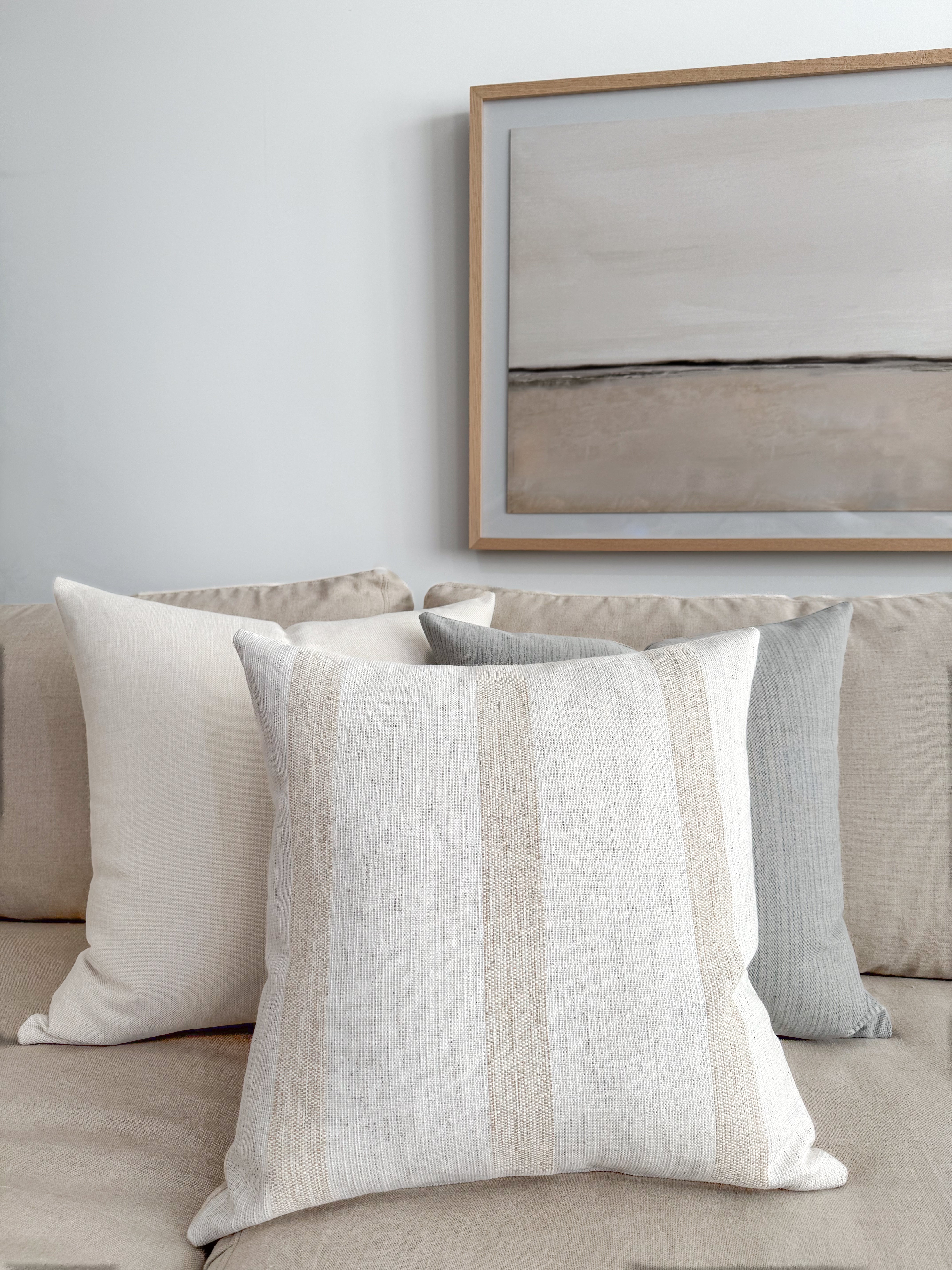 Introducing the “Reflection Stripe White” Pillow Cover, a design that encapsulates the essence of fresh, warm weather vibes. This cover features a clean and crisp aesthetic, with subtle striped patterns that evoke a sense of tranquility and reflection. The white hue enhances the feeling of brightness and warmth, making it a perfect addition to your space during the sun-filled seasons. The “Reflection Stripe White” Pillow Cover effortlessly brings a touch of the outdoors inside, creating an atmosphere of serenity and calm reminiscent of a sunlit summer day.