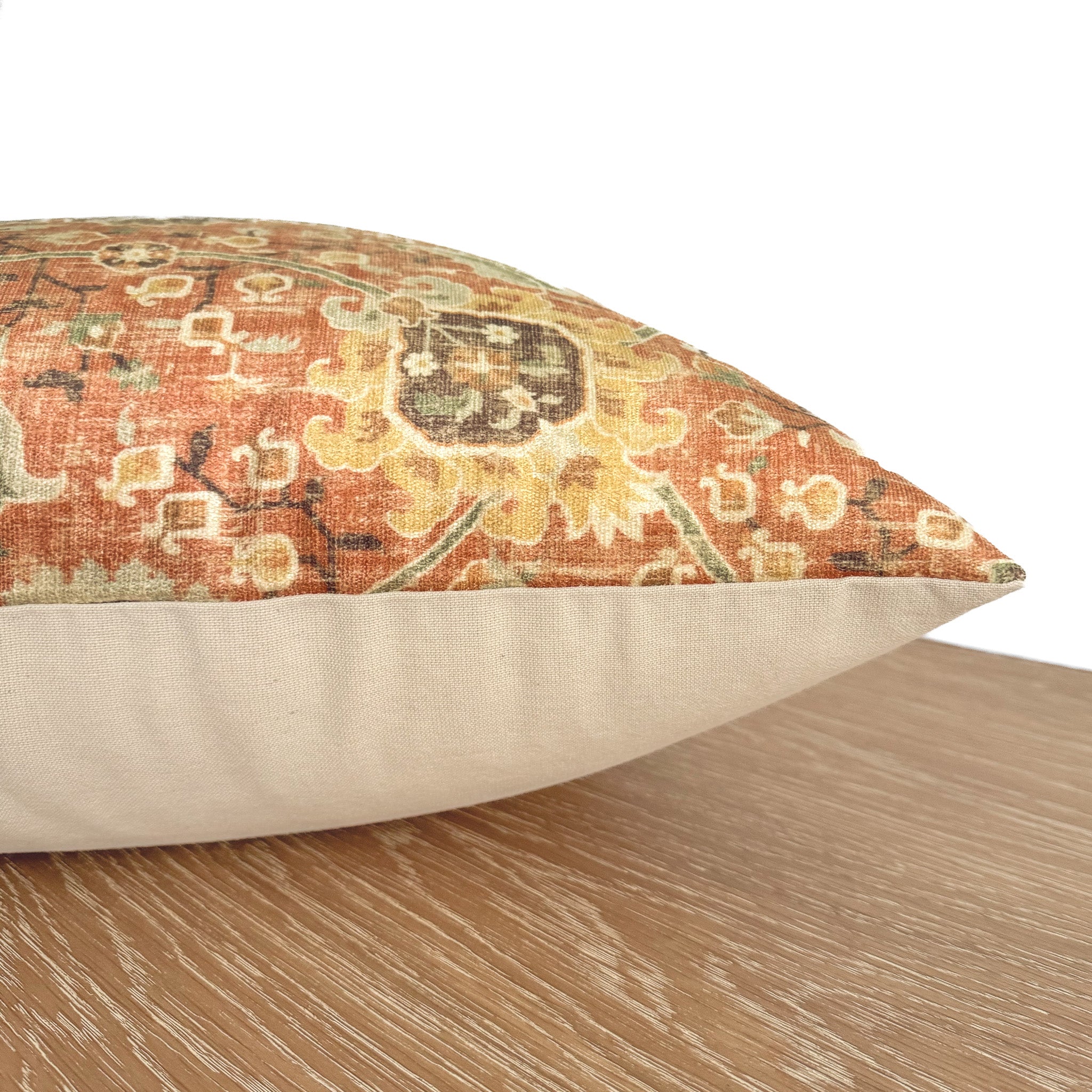 - Back of pillow cover is made of linen bend fabric.