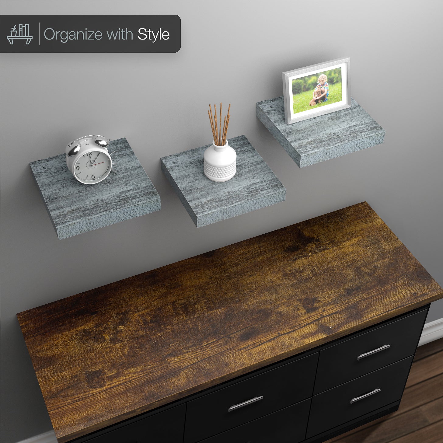Display your home decor using the Sorbus Floating Shelves. Accent your powder room’s blank wall using this farmhouse style floating shelf to display your favorite decor items, photos, toiletries, and more. The cube-shaped design adds visual interest to any bare wall. Install in the bedroom, living room, bathroom, home office, and more.