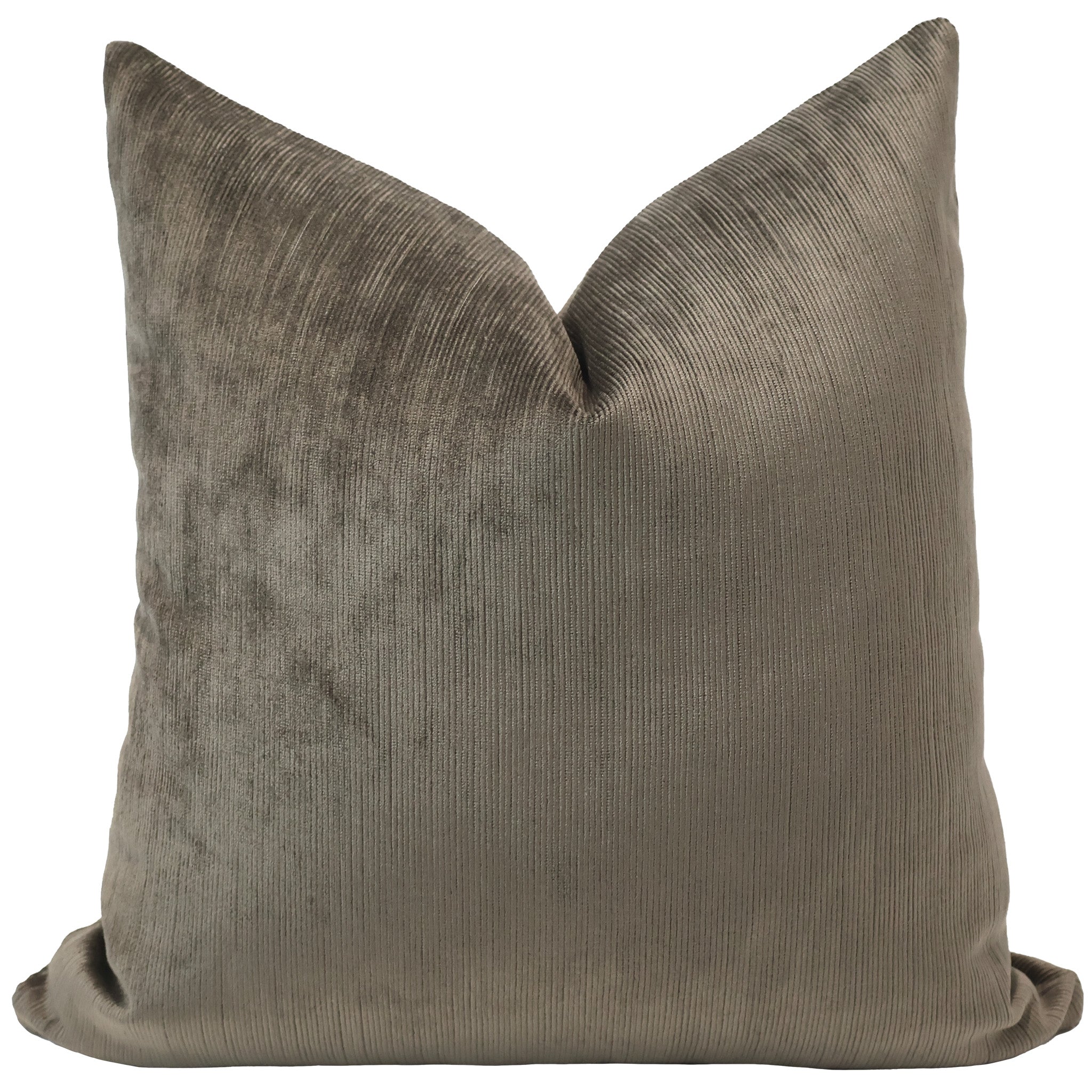 Bring texture and depth to your interiors with the timeless sophistication of our Sablewood Velvet pillow cover. Featuring a silky ribbed velveteen fabric in a rich taupe-brown hue, this piece adds warmth and understated glamour to any room.