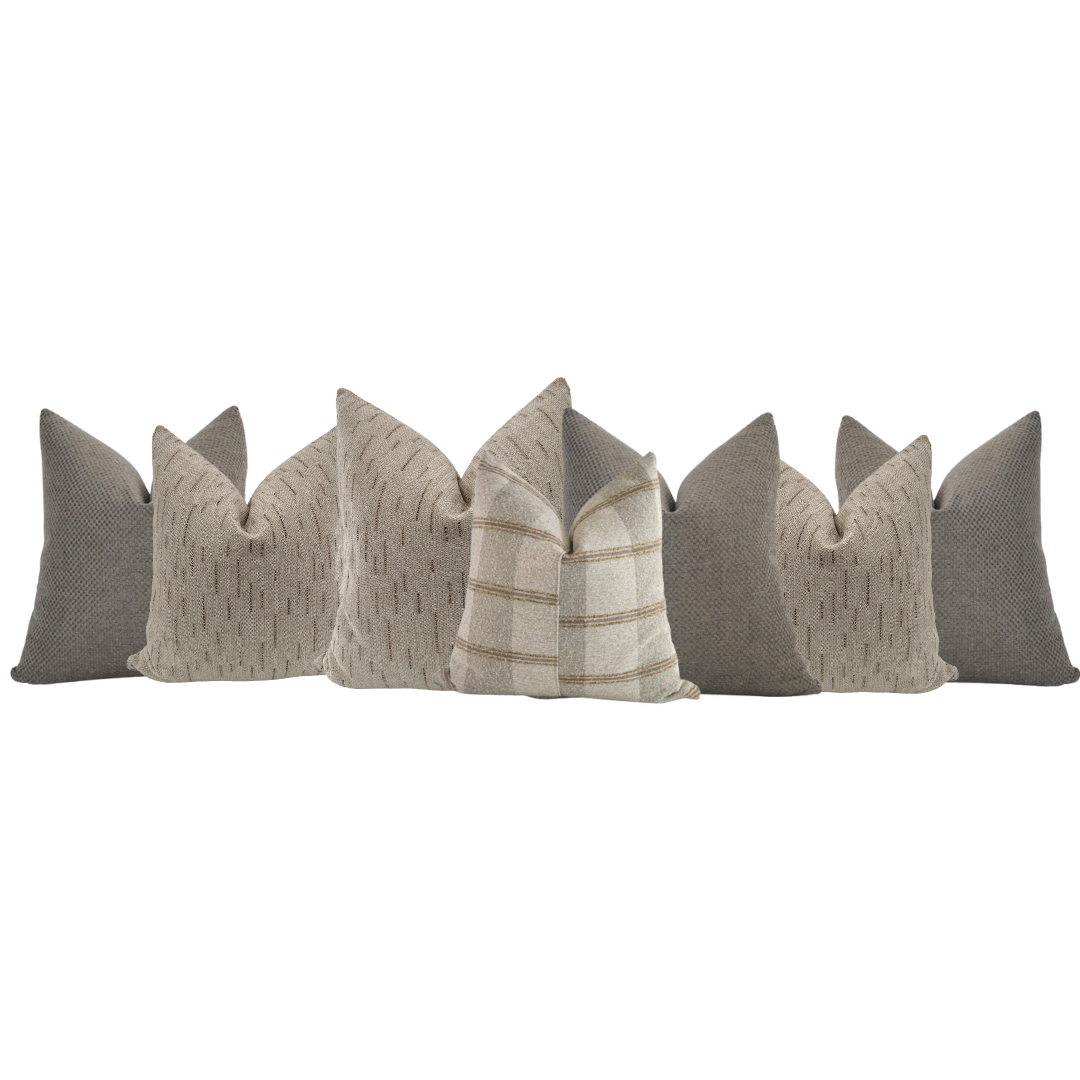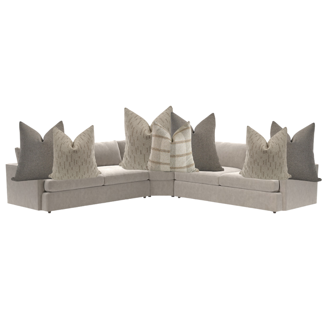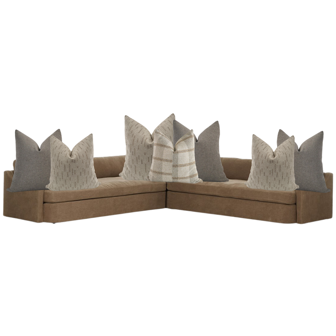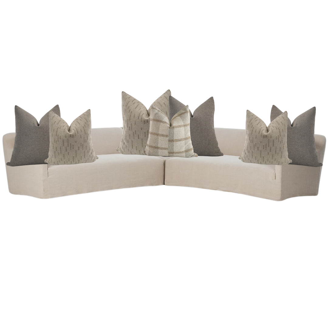 The Drifted Linen & Stone Sectional Pillow Combo by HACKNER HOME is a refined composition designed specifically for L-shaped sectional sofas, where balance, scale, and durability matter just as much as beauty. This thoughtfully curated pillow cover set blends soft linen-inspired tones with stonewashed neutrals, creating a calm, cohesive look that feels effortlessly elevated.