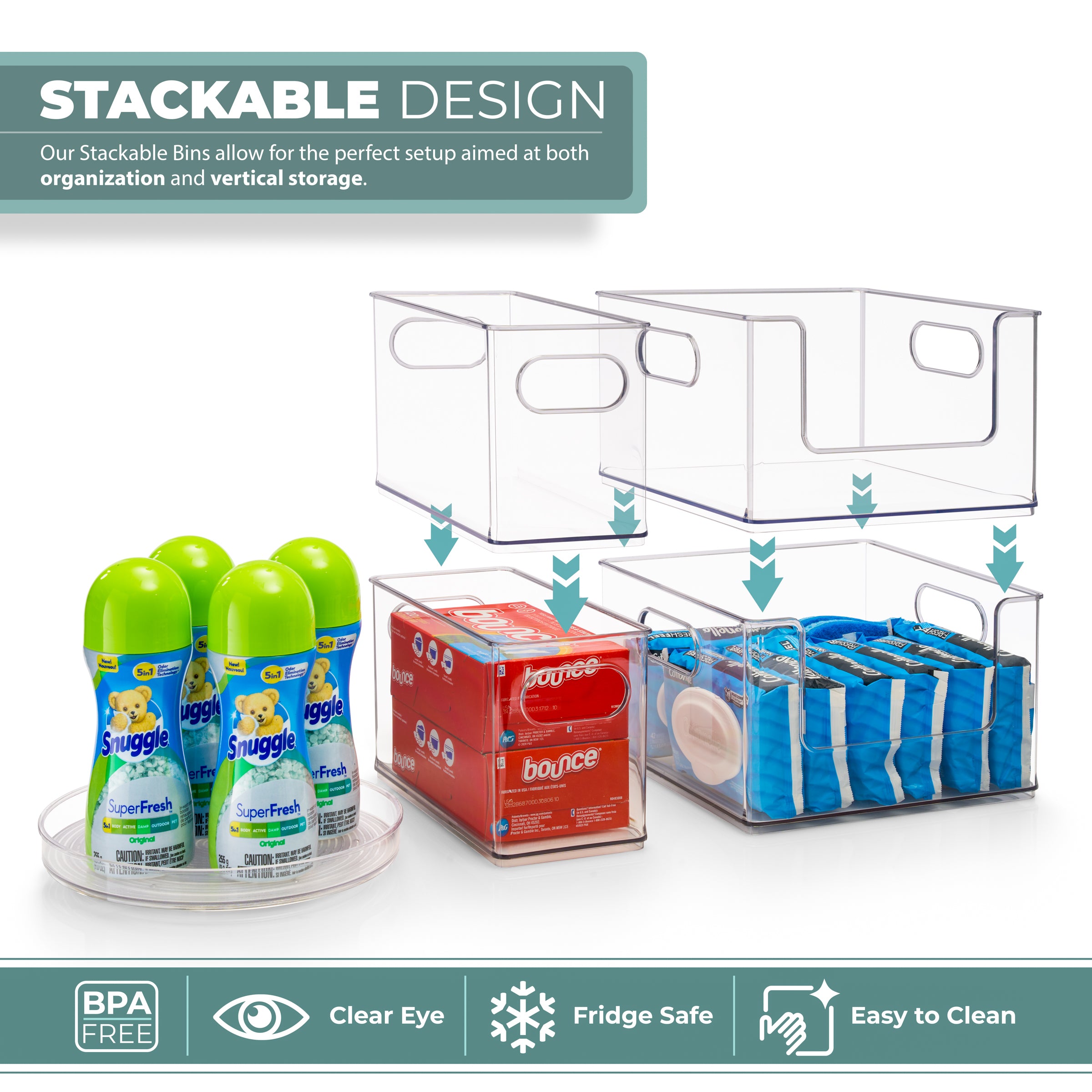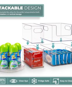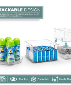 Organizing laundry and household essentials has never been easier with the Sorbus Clear Stackable Storage Bins. This laundry supplies organizer set comes with five organizers, including two narrow, stackable bins, two open front stackable clear bins, and one rotating lazy susan.