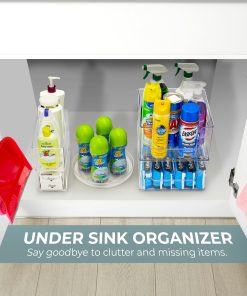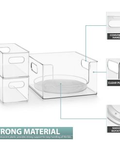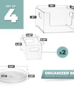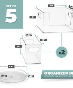 - Design Details: Includes 5 organizers: 1 lazy susan, 2 narrow bines, and 2 open from large storage bins