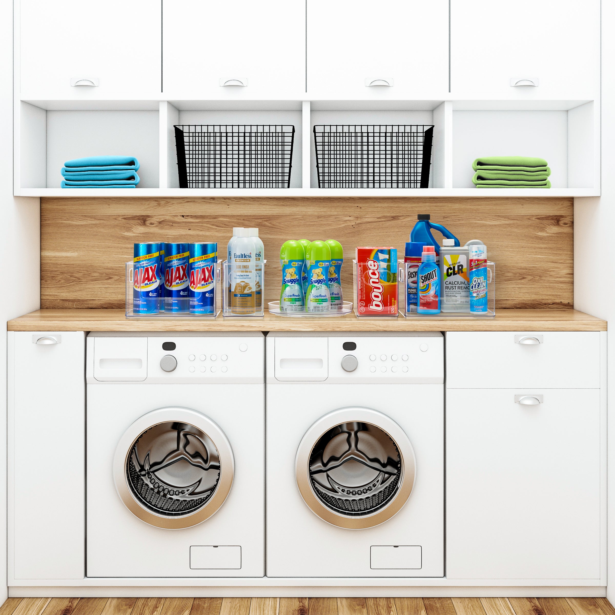 - Versatile Clear Plastic Storage Bin Set: Suitable for use in the laundry room to organize detergent, dryer sheets, lint rollers, dryer balls, baking soda, bleach, clothes pins, cleaner, and more