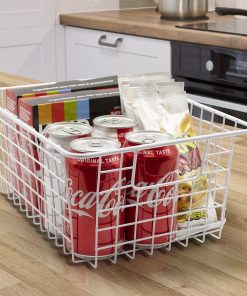 - Great for dry goods, snacks, soups, canned goods, seasoning/flavor packets, soda pop cans, juice boxes, condiments, kitchen supplies