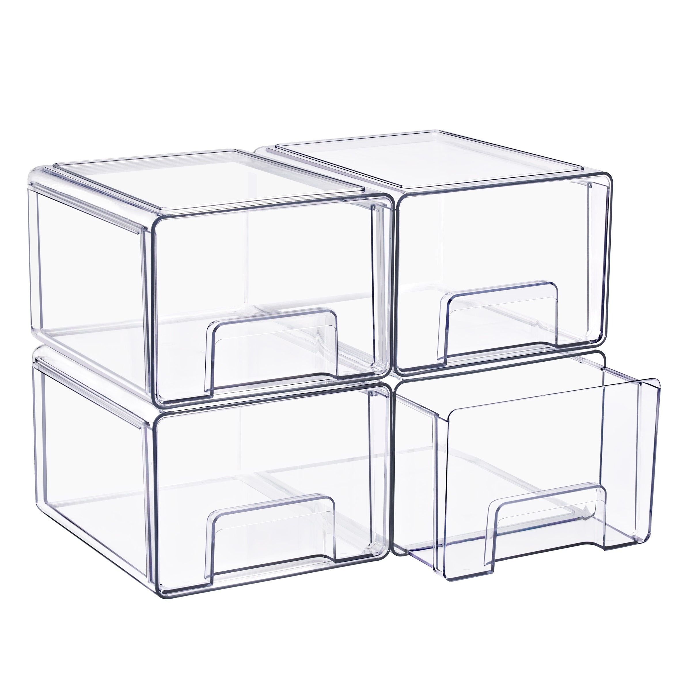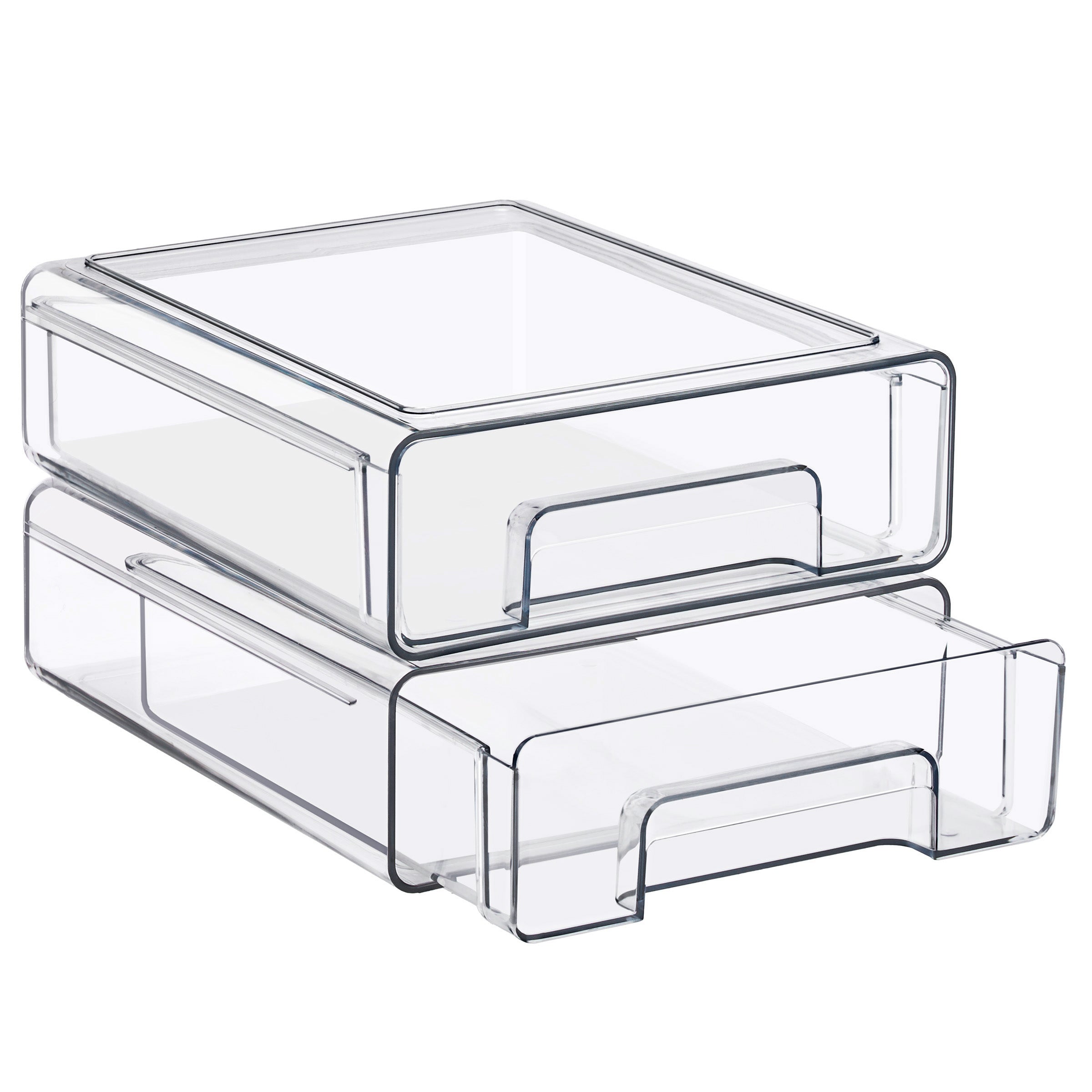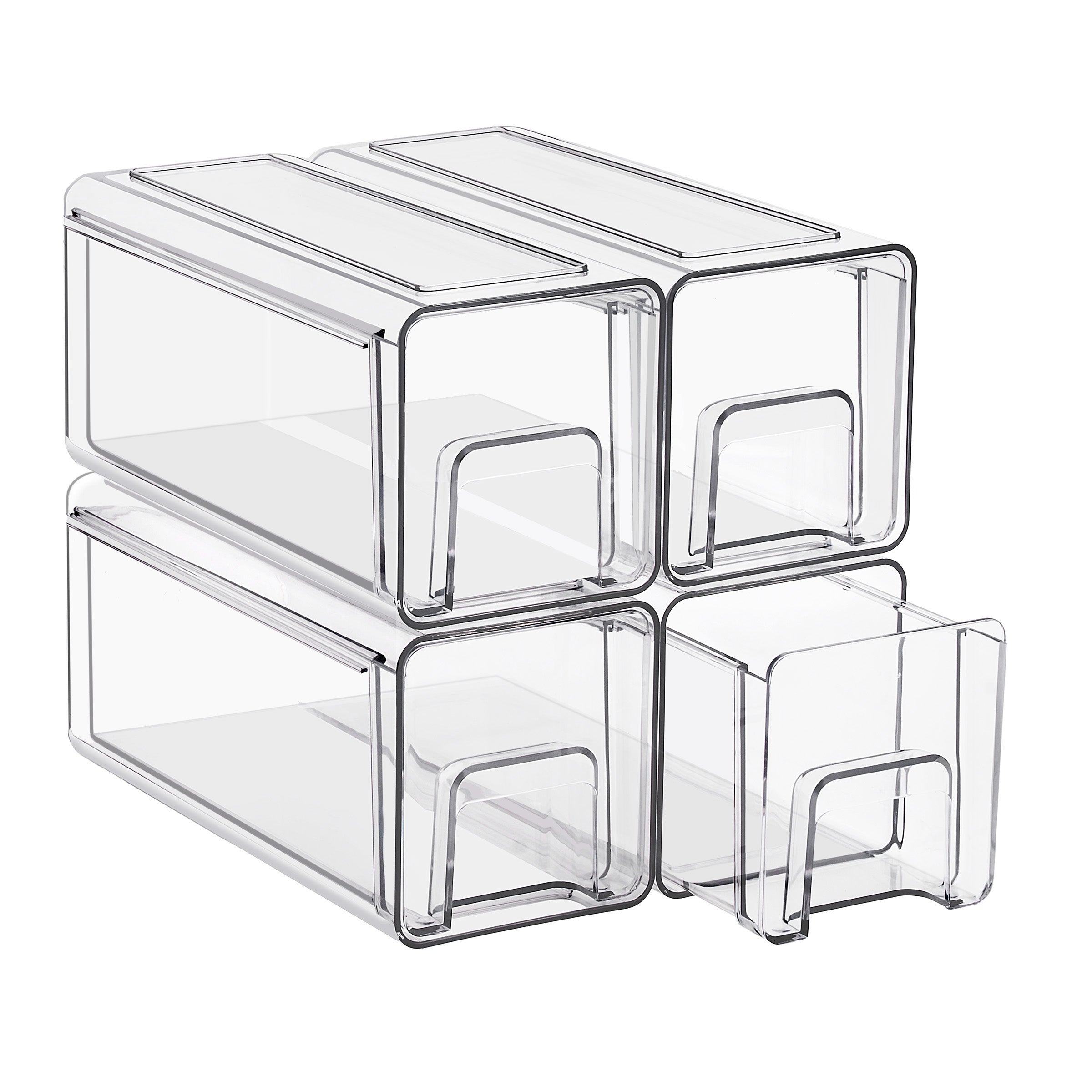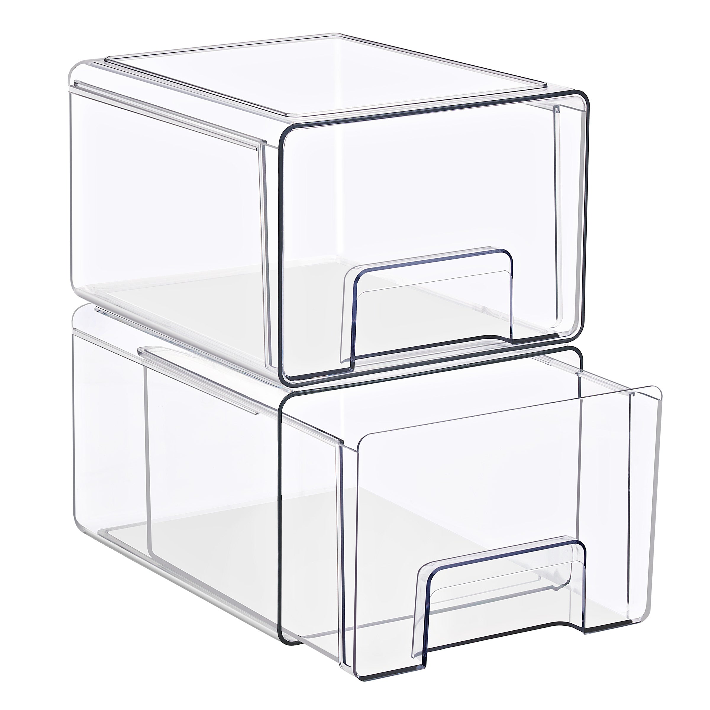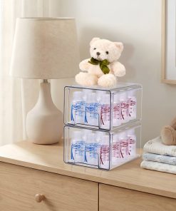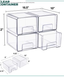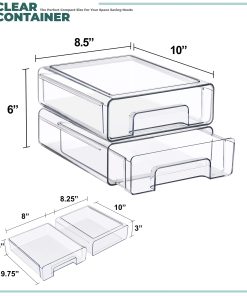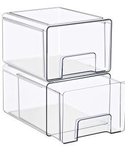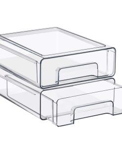 Keep your space neat, functional, and beautifully organized with the Sorbus Clear Stackable Storage Drawers, featuring three size options: large, medium, and small drawers in 2- and 4-pack sets. Designed to maximize vertical space, these clear plastic organizer bins stack securely to create a customized storage solution for bathrooms, closets, pantries, cabinets, offices, and nurseries. The transparent design allows you to see the contents at a glance, making it easy to locate everyday essentials such as baby bottles, skincare products, cosmetics, medicine, snacks, or office supplies. Smooth pull-out drawers with built-in handles provide quick access, even when stacked, while the durable, high-quality plastic construction ensures long-lasting use. Easy to clean and endlessly versatile, this modular drawer system blends seamlessly into modern, contemporary, or traditional decor, helping you maintain a clutter-free and organized home.