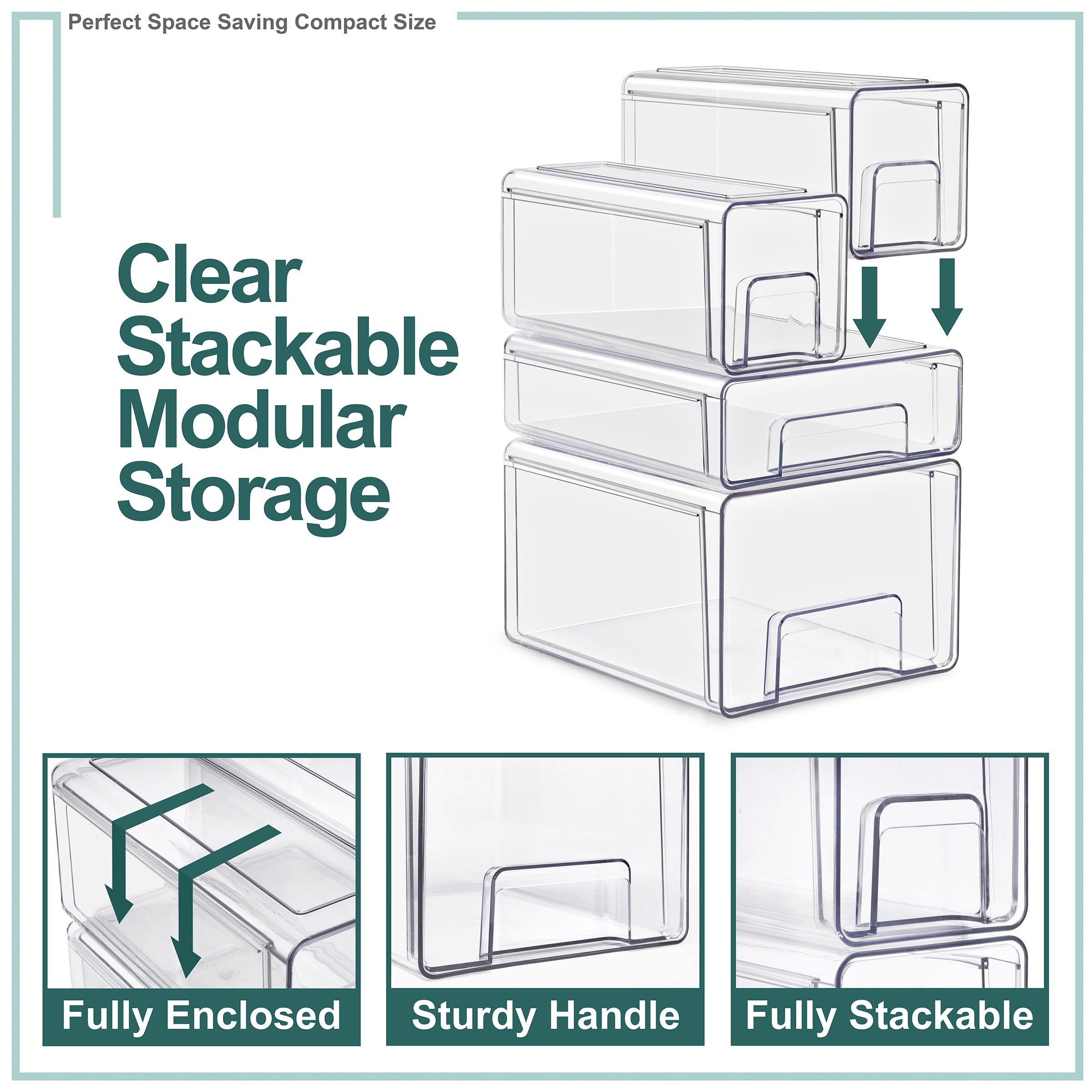 - Smooth Slide-Out Drawers with Handles: Wide built-in handles and anti-slip construction allow drawers to glide open smoothly, even when stacked.