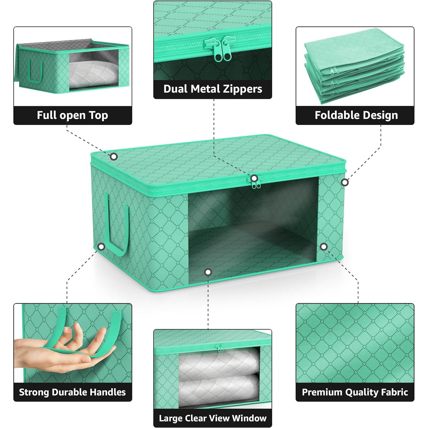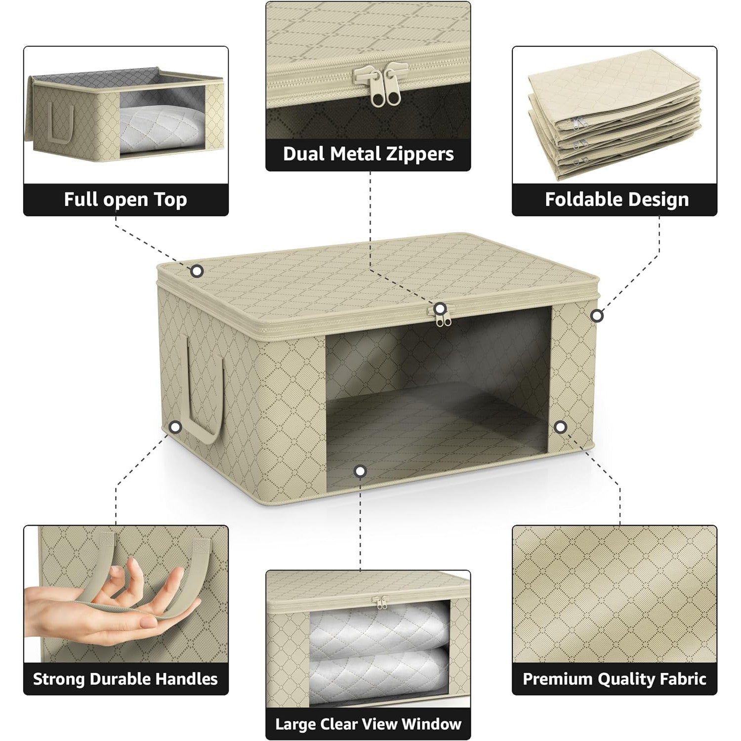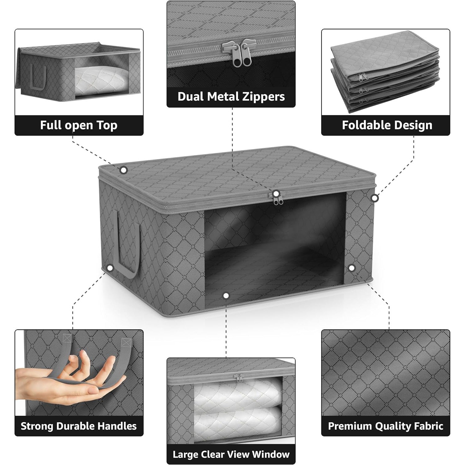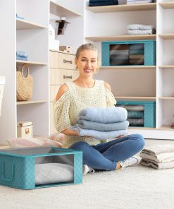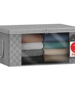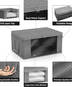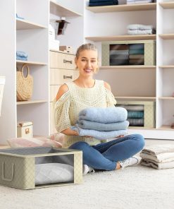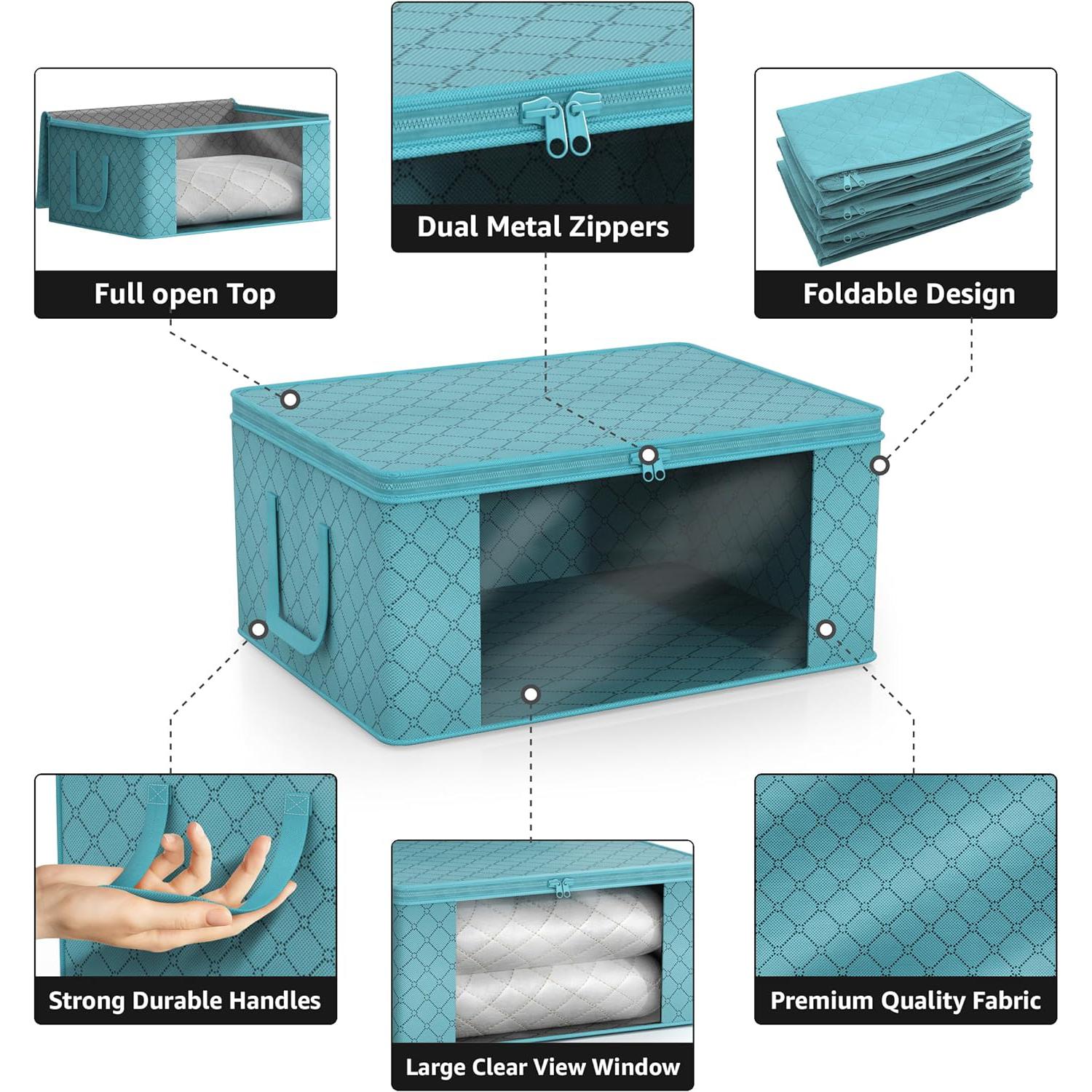 - Stores seasonal clothes, quilts, blankets, linens, pillows, comforters, and more.