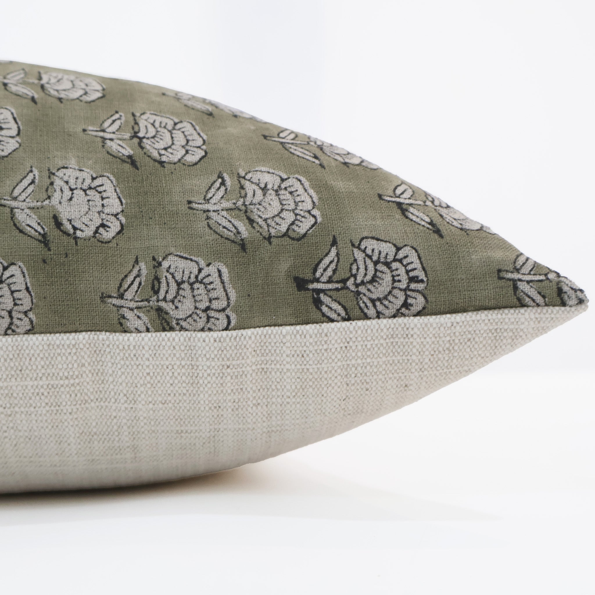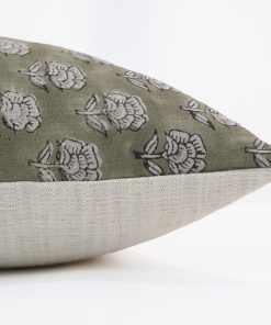 Our Subdued Green Floral Block Print Pillow Cover made of 100% linen is from our Block Print Collection of authentic vegetable dyed fabric & hand pressed to create their unique design. The perfect green color offers a transitional style that will pair beautifully with many pillows from the shop. This pillow cover is made out of hand dyed woven linen fabric and is perfectly imperfect in its design.