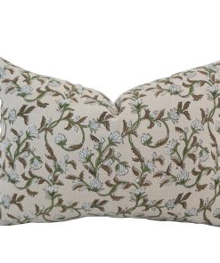 The Sweet Autumn Clematis Block Print Pillow Cover by HACKNER HOME brings artisan charm and timeless elegance to your home décor. Handcrafted from 100% linen, this designer pillow cover features an authentic block print design of delicate white flowers entwined with green and brown vines, capturing the beauty of autumn’s quiet transition.